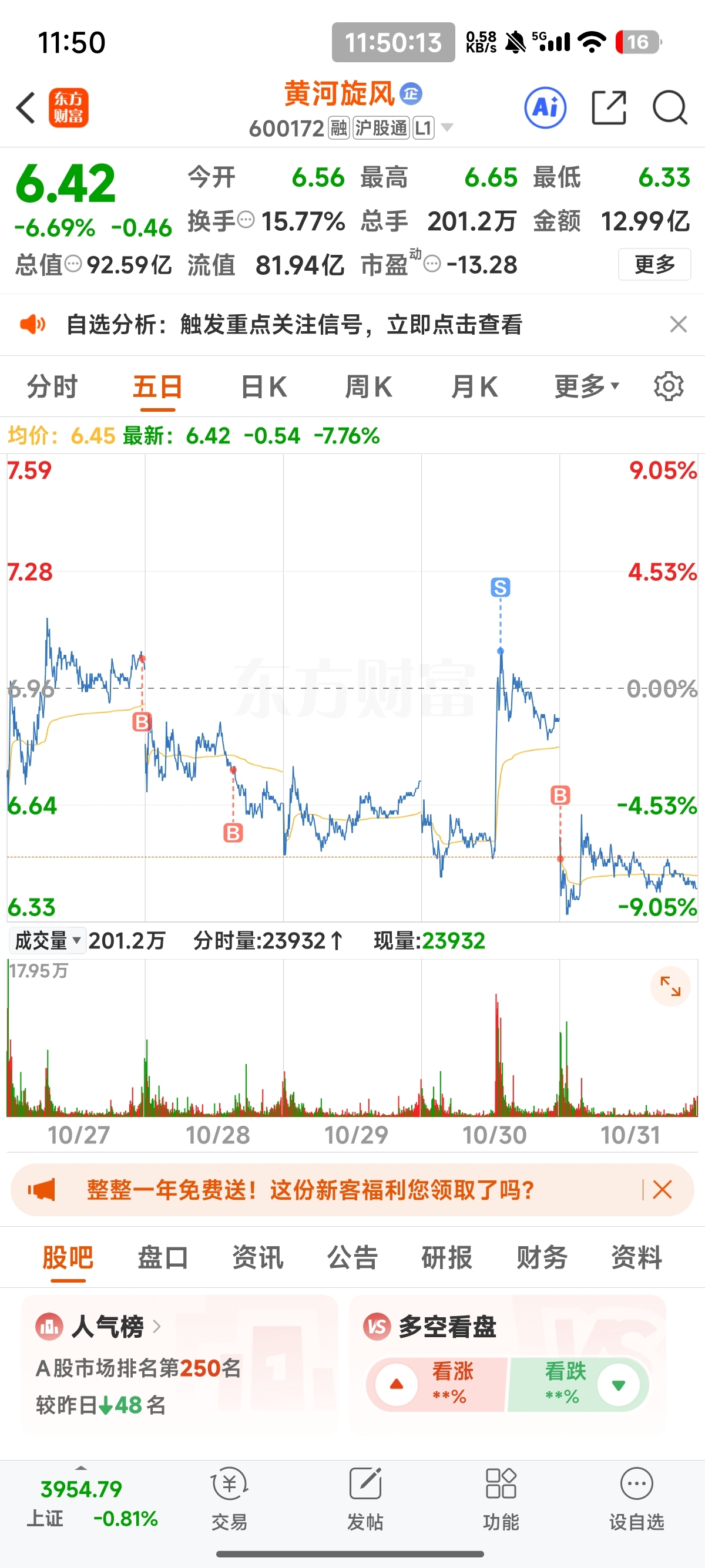 $黄河旋风(SH600172)$ 我怎么看这个日线走势都是主力跑完了