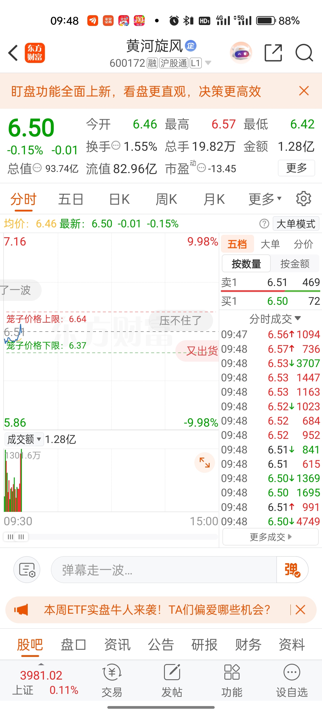 $黄河旋风(SH600172)$ #复盘记录# #股市怎么看# #实盘记录# 把握机会
