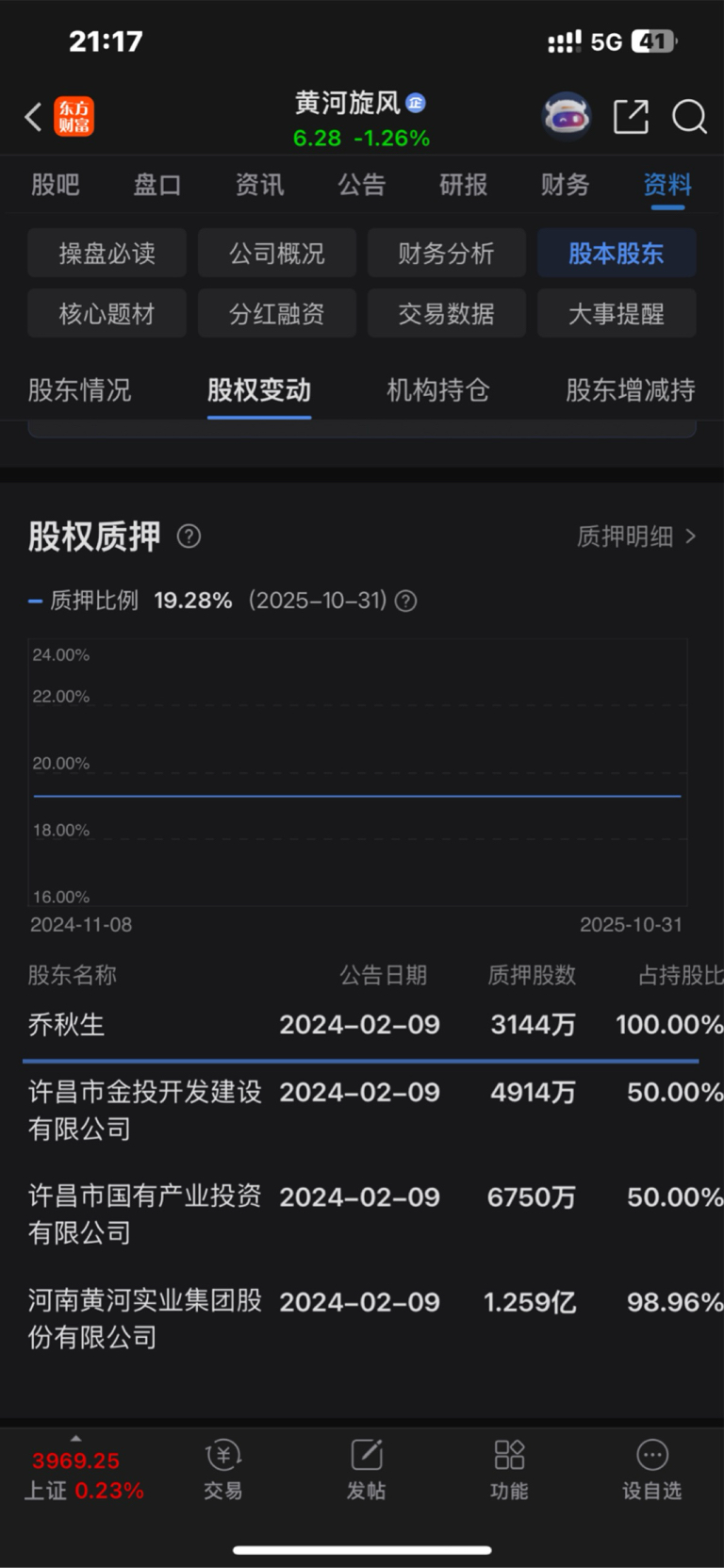 $黄河旋风(SH600172)$ 银行其实有3144万股,为什么不全部拿出来拍卖而只拿出来600万股,说明银行也看好后市能卖更好的价格,这些年收了老乔的质押估计利息都没收几年,肯定要等个更好的价格才会全部拿出来拍卖,短期回调与震荡改变不了乌鸡变凤凰的未来格局,时间会给出答案,等不起的,害怕st退市的,注定都是吃不到大肉的人,毕竟风险和收益永远都是对等的!