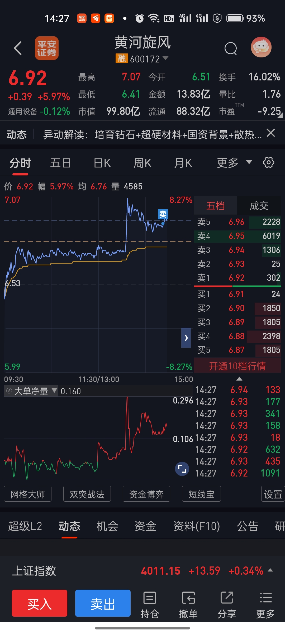 $黄河旋风(SH600172)$ #复盘记录# #股市怎么看# #周度策略# #收盘点评# #投资干货# 粉丝们们,我黄河旋风我减仓位了,减六成仓位