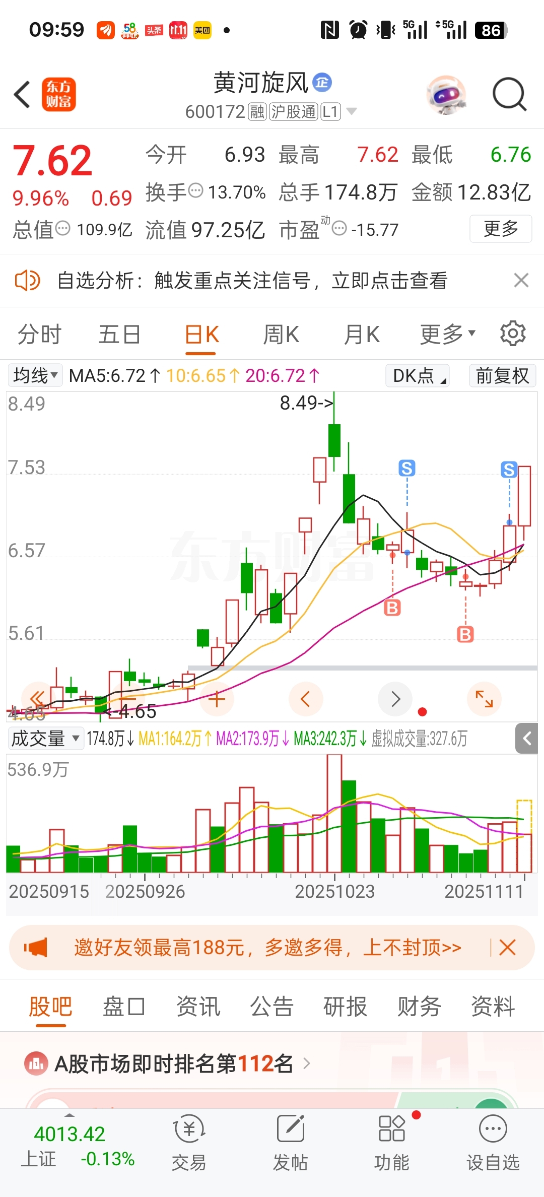 $黄河旋风(SH600172)$ 唉,自己判断失误拍大腿#炒股日记# #复盘记录#