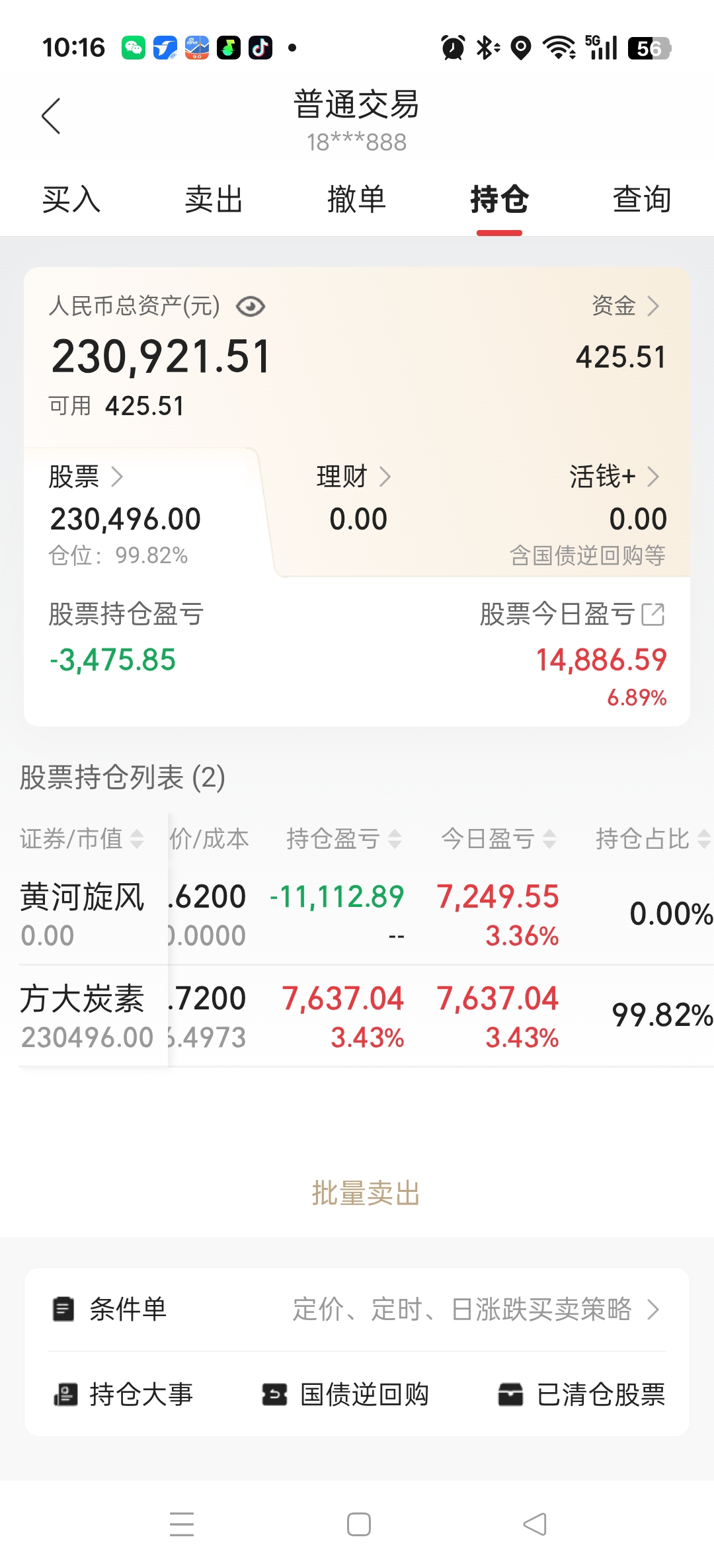 今天卖飞了,但是回本2万多了,冲动买了方大炭素,幸亏涨停了