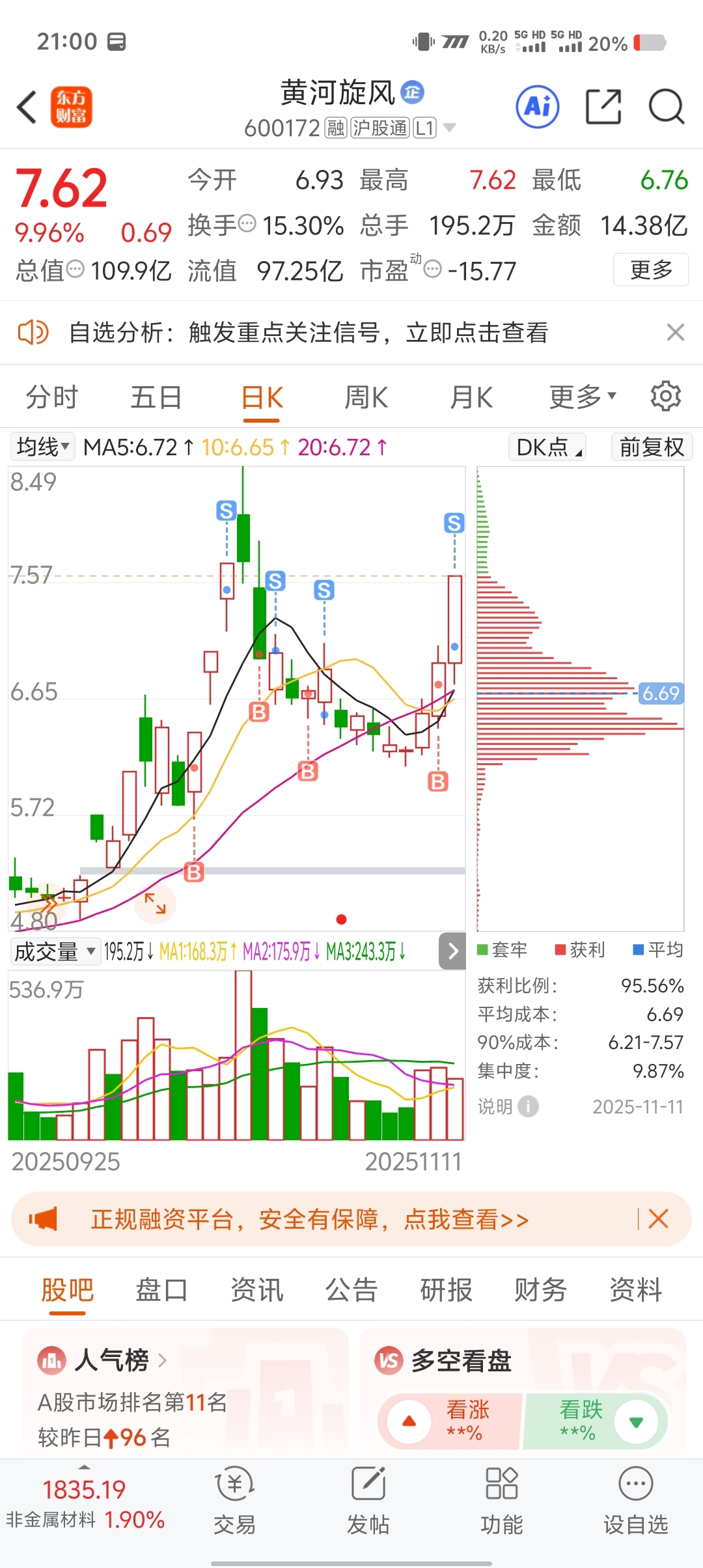 $黄河旋风(SH600172)$ 前面的早上卖了,买了个后面的。后悔死了