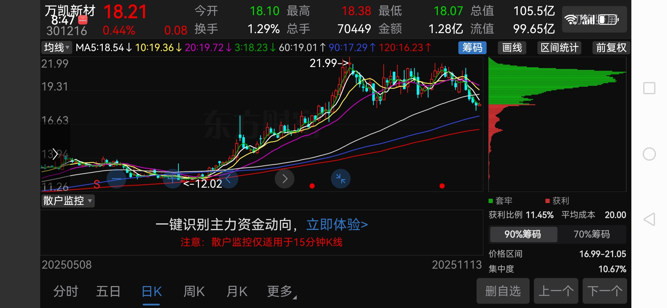 这位置,底下筹码峰在出逃,昨天收盘2峰长度差不多一样长,今天股价都没上过那些位置,筹码峰短了这么多,只能证明老庄在出逃,明天要么打万凯,凯美特气,只要不下杀,我都算低价,看中大众公用,尾盘给你拉3个上去,明天三安