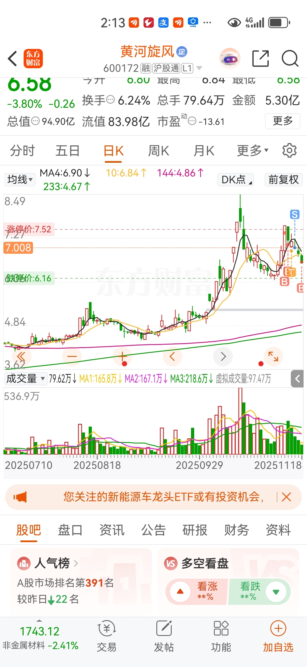$黄河旋风(SH600172)$ 你们都看跌,我加仓