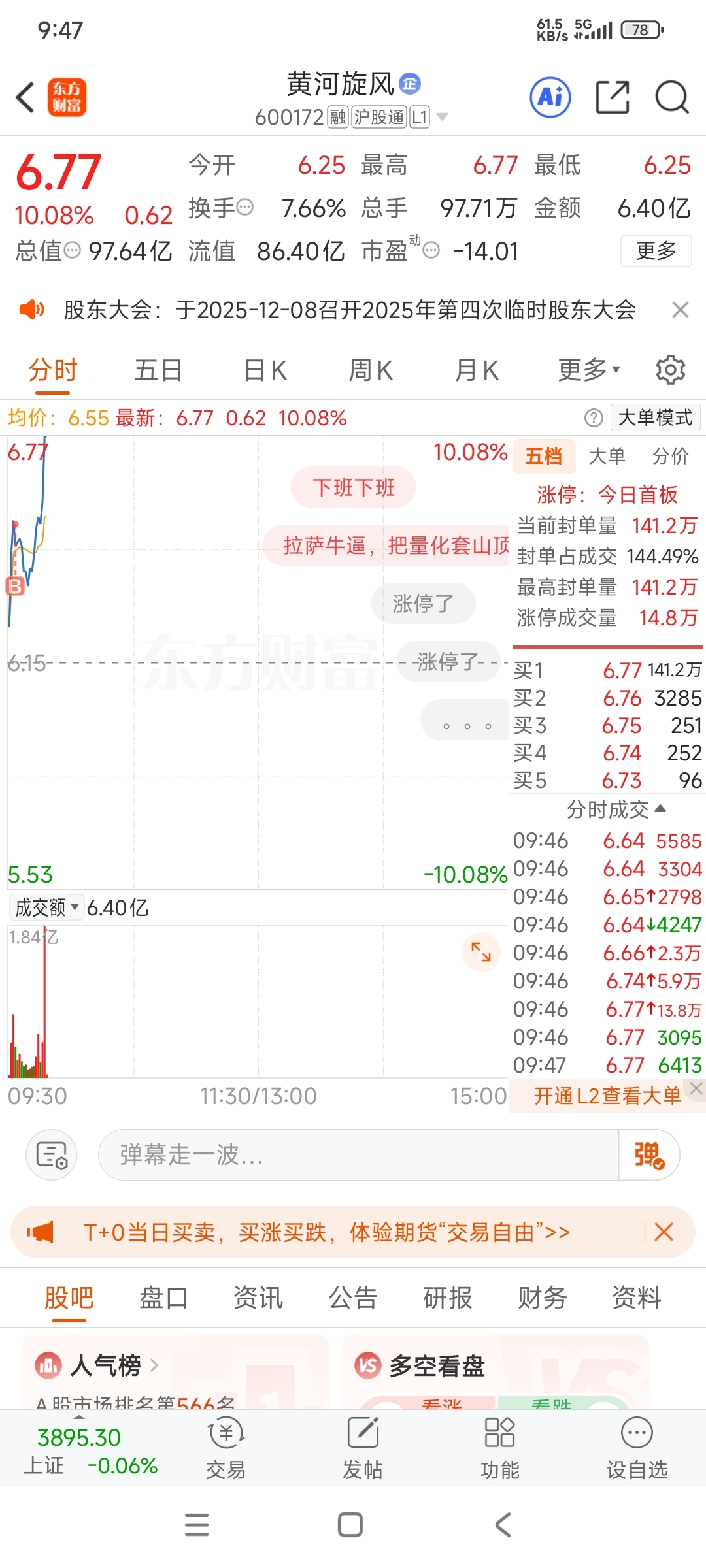 $黄河旋风(SH600172)$ 做个小波段,预计周五清仓