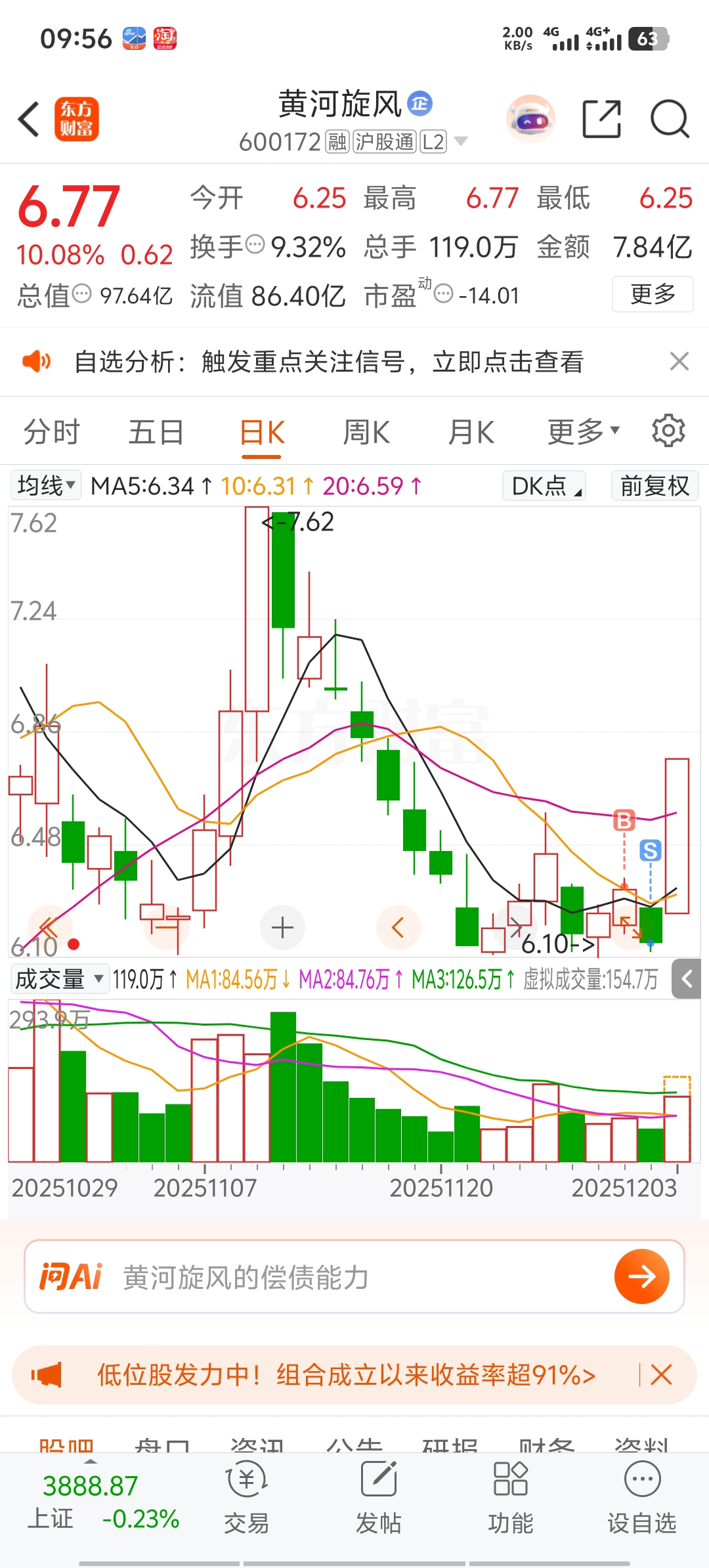 $黄河旋风(SH600172)$ 虽然只有一点,也不能这样整我吧