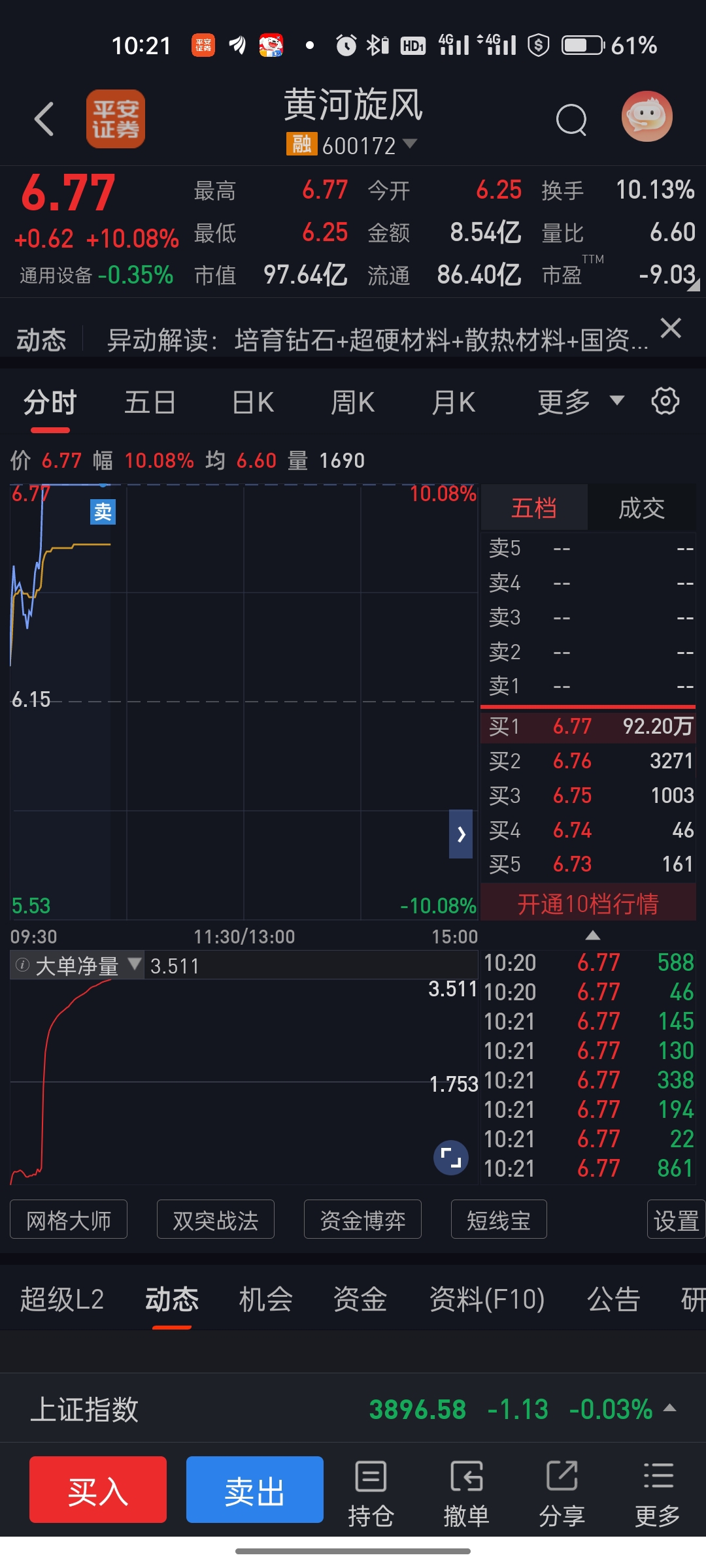 $黄河旋风(SH600172)$ #炒股日记# #强势机会# #股市怎么看# #实盘记录# #收盘点评# 我只赚认知能力内的钱,留下的希望继续发财