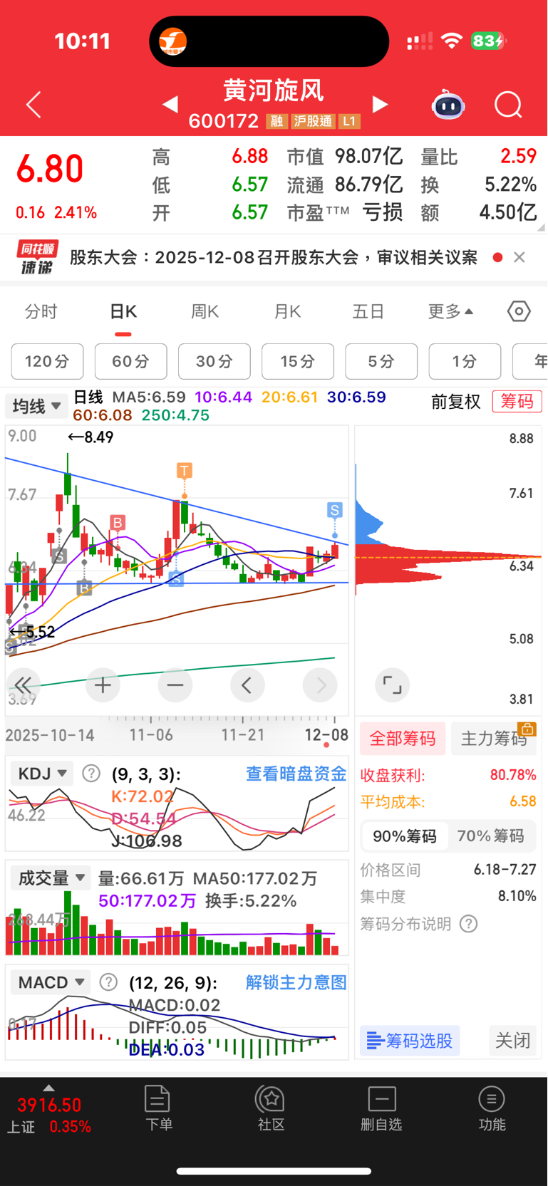 $黄河旋风(SH600172)$ 虽然有可能卖飞,但是坚守自己原则