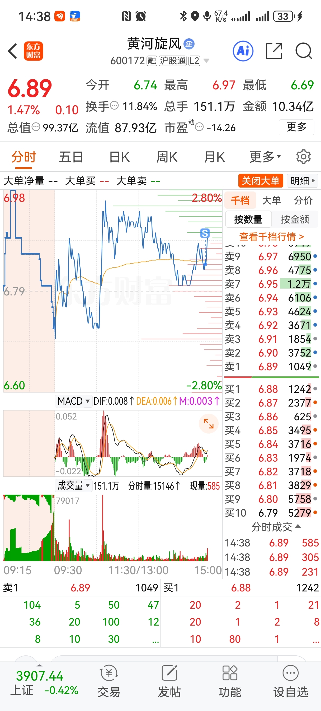 $黄河旋风(SH600172)$ 你是真6,一卖就涨