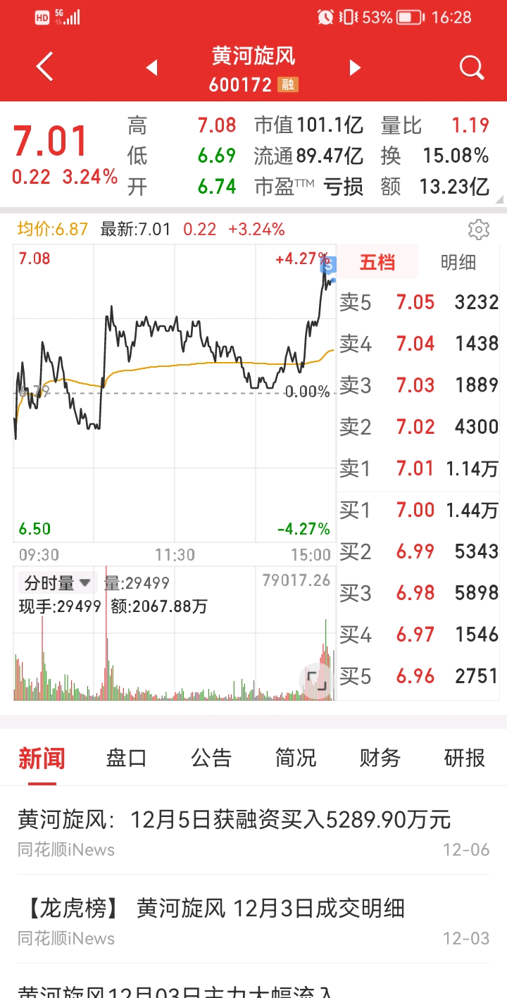 $黄河旋风(SH600172)$ 尾盘逆市拉高,牛,但我还是得减仓,明天如果回调再接回,涨就拿着