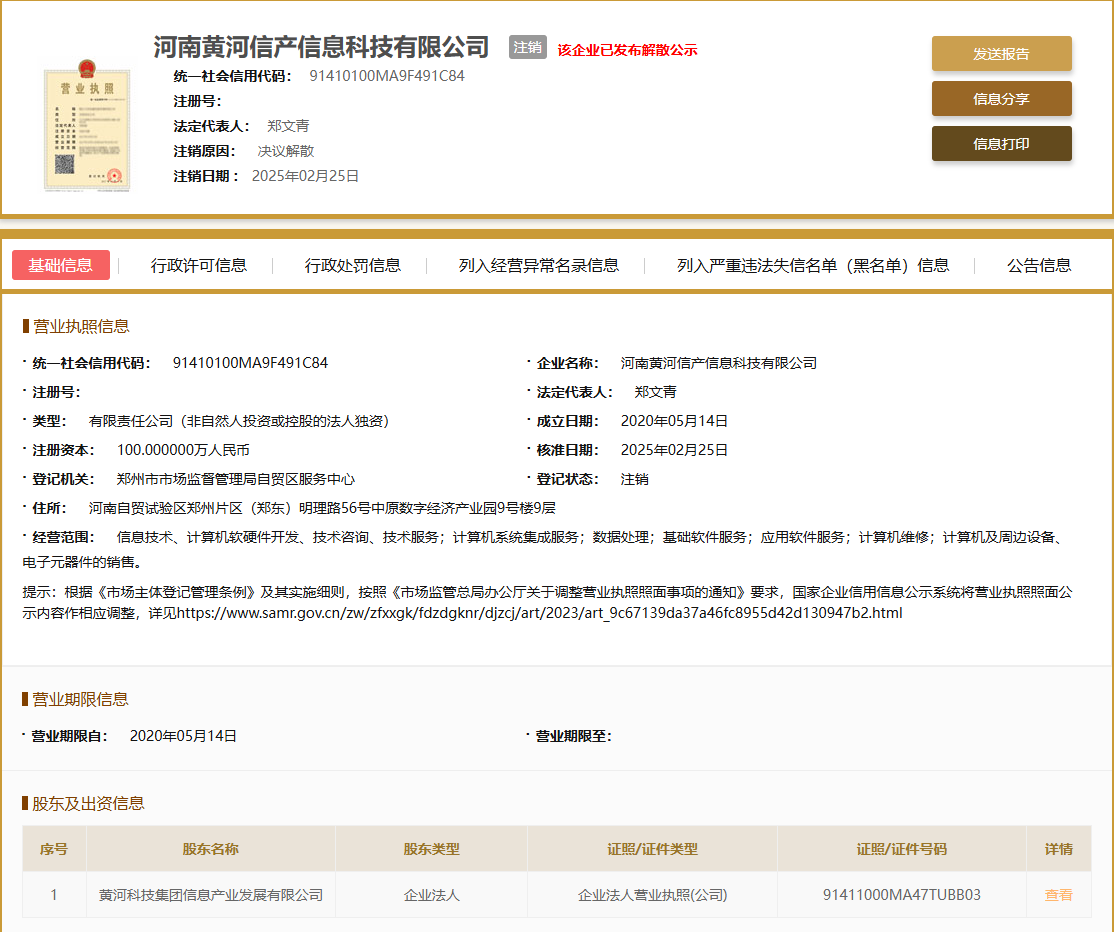 现在已经没有黄河信产这家公司了,现在只有黄河科技集团信息产业发展有限公司,25年12月29日,许昌国资完成了投资人变更,现在已经100%控股了,现在除了名字还叫黄河科技集团,实际黄河科技集团已经全部退出这家公司了,接下来,应该是要更名和换帅了,看来资本运作一直在进行,啥时候轮到黄河旋风目前只能听天命了