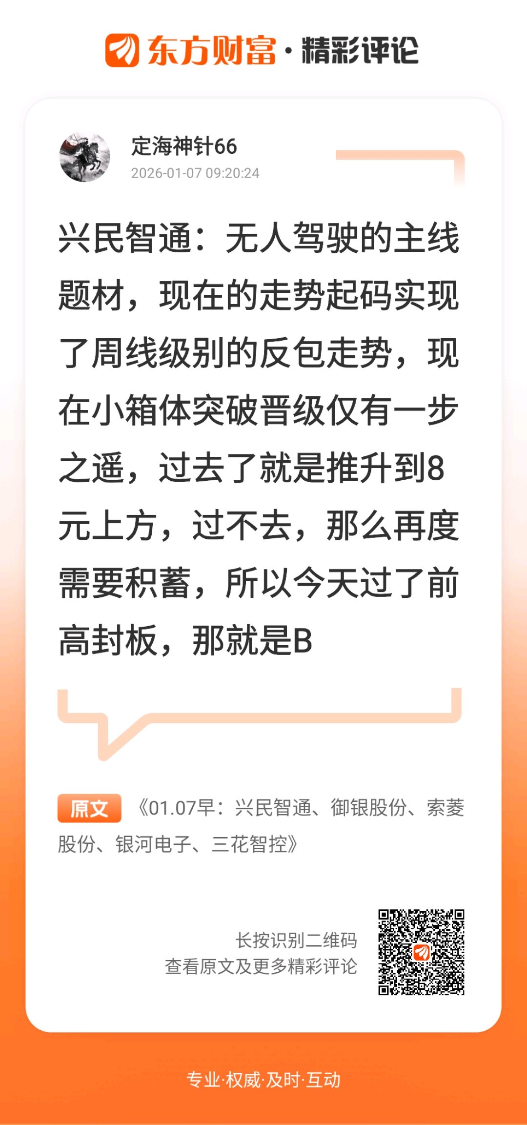 兴民智通:随着国内关于无人驾驶方面的布局,带来了相关板块出现剧烈异动上涨。随后在昨天当中,英伟达开源了智能驾驶模型,所以将会极大地促进智能驾驶行业的发展,而在2027年甚至可能会切入智能驾驶赛道。因此在此情况之下,相关的板块个股集体异动上涨。个股作为智能驾驶的相关公司,也是在此因素影响之下,昨天直线拉升收出涨停,其次则是目前公司的通信域的控制器,配套在了L3和L4的无人驾驶robot台子上面,无论是萝卜快跑还是国内的其他主流车企。所以这是最直接充分受益的。当前的结构形态也形成了底部双涨停,堆量结构基本完成,但上方有相当多缺口压制。所以在个股的走势来说,只有走出连板结构形态,流畅式的上涨才能看高一线。