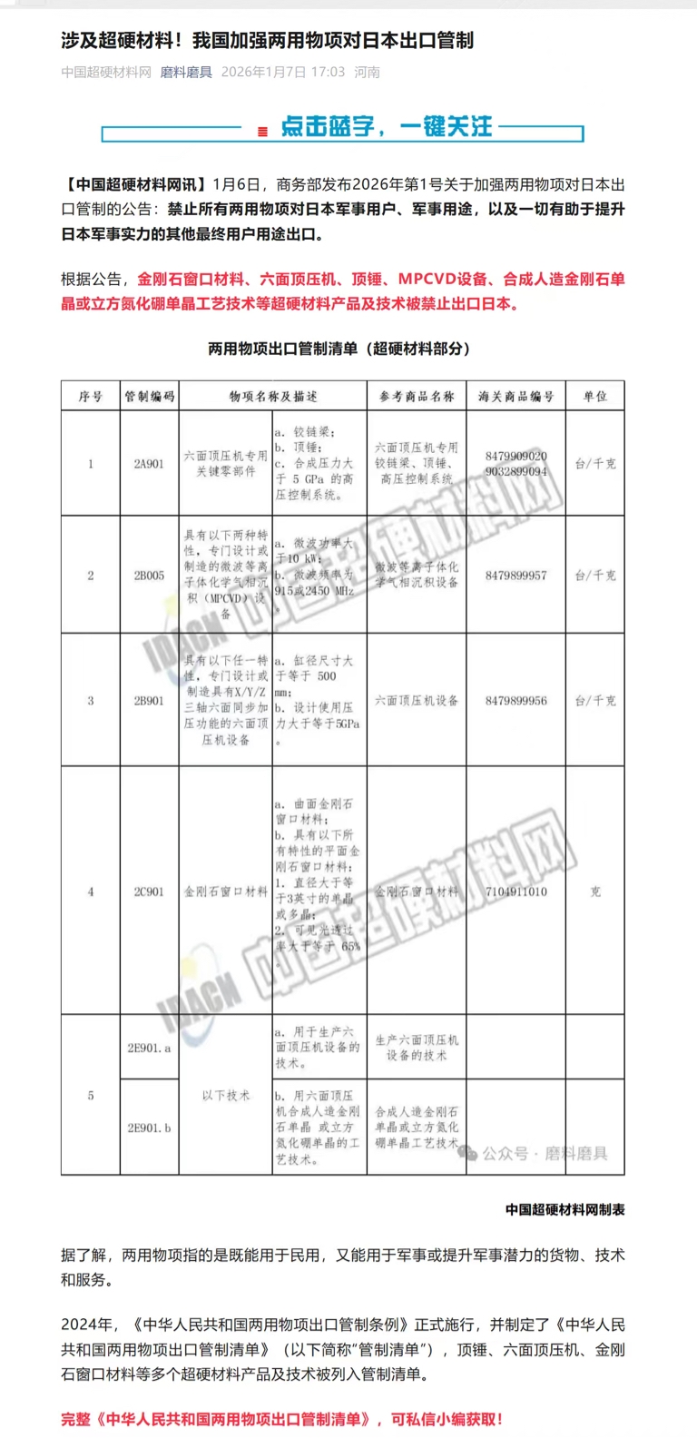 $黄河旋风(SH600172)$ 金刚石是出口管制必选之一,因为可制造高端武器必备件