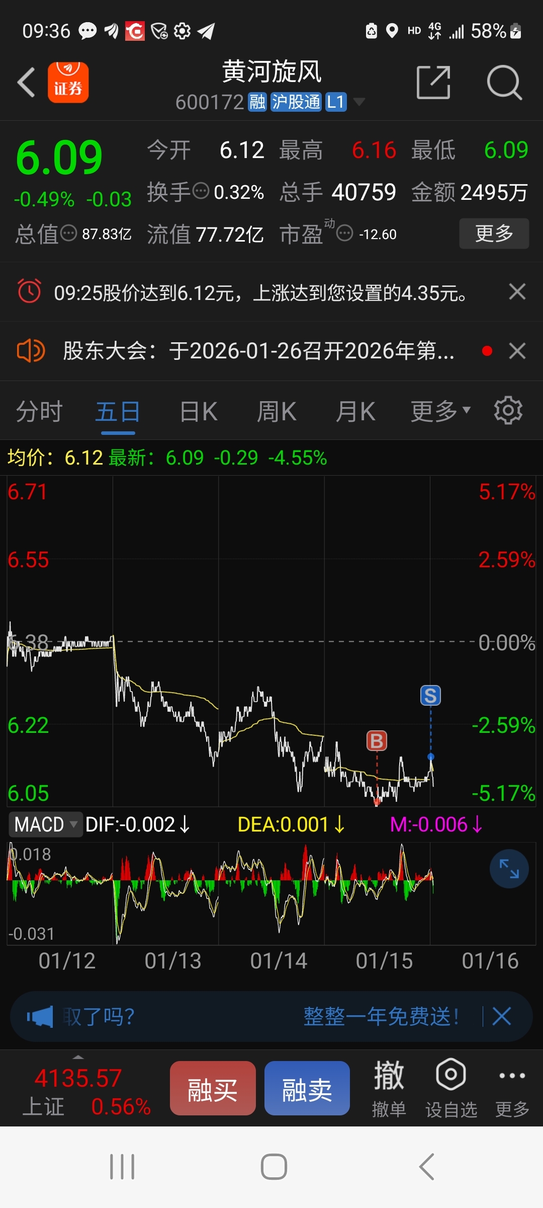 $黄河旋风(SH600172)$ zou