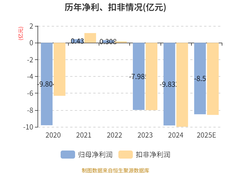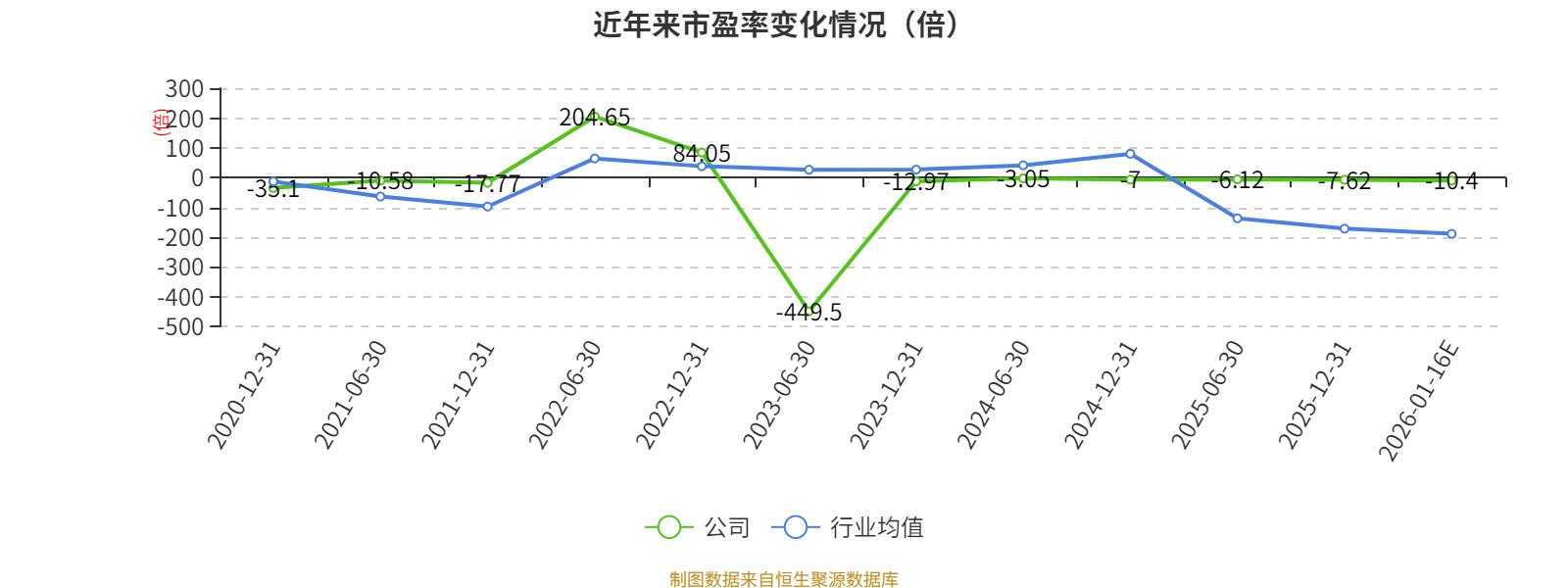 中证智能财讯黄河旋风(600172)1月16日晚间披露2025年度业绩预告,预计2025年归母净利润亏损8.5亿元,上年同期亏损9.83亿元;扣非净利润亏损8.58亿元,上年同期亏损9.99亿元。以1月16日收盘价计算,黄河旋风目前市盈率(TTM)约为-10.4倍,市净率(LF)约8.95倍,市销率(TTM)约6.45倍。
