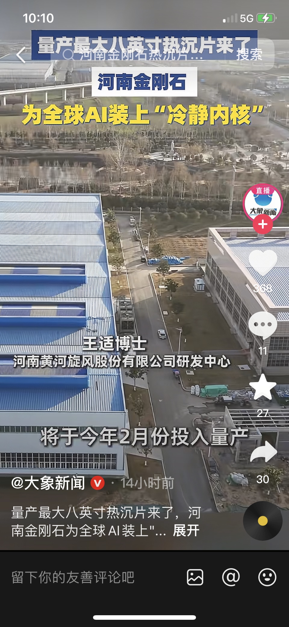 $黄河旋风(SH600172)$ 今年2月量产散热片,国内首家批量生产,最大八英寸