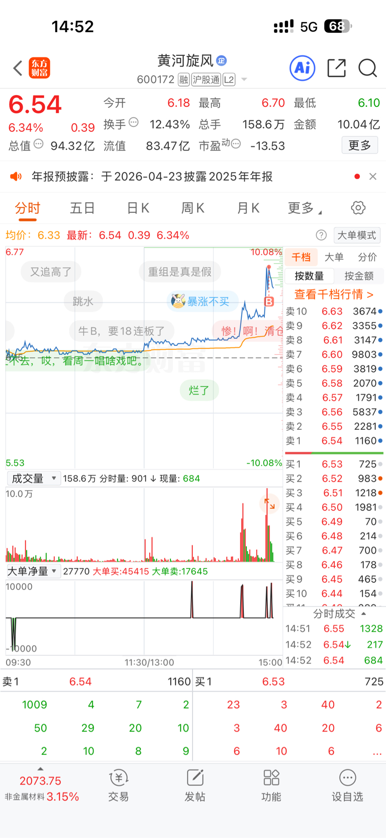 $黄河旋风(SH600172)$ 真的是慢一秒我都买不到这个价格