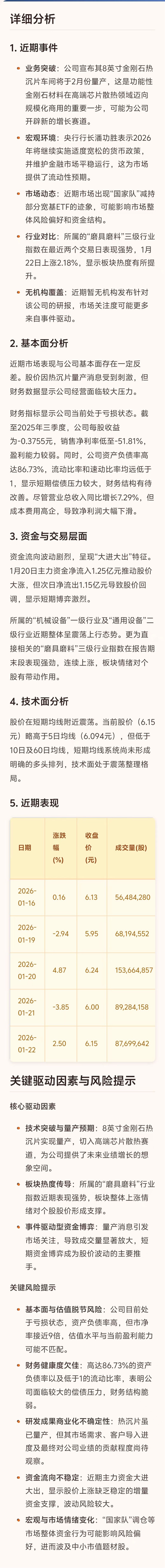 $黄河旋风(SH600172)$ 黄河旋风股价近期呈现宽幅震荡格局,1月20日一度大涨近5%,但随后出现回调。股价波动主要受到其功能性金刚石(热沉片)业务量产消息的提振,以及市场整体情绪和资金流向变化的影响。关键亮点在于公司宣布其8英寸热沉片车间将于2月量产,这标志着其产品在高端芯片散热领域迈向规模化商用。