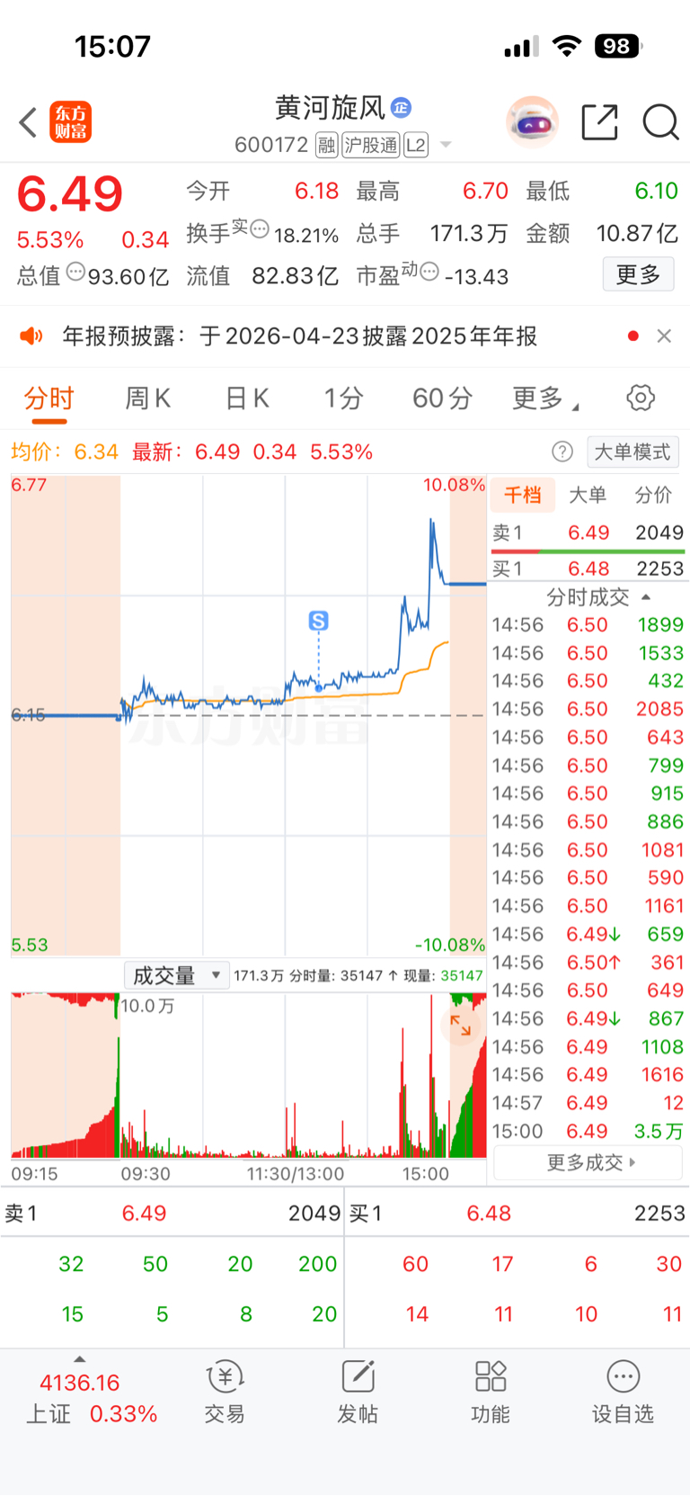 $黄河旋风(SH600172)$ 谁懂我现在的心情啊
