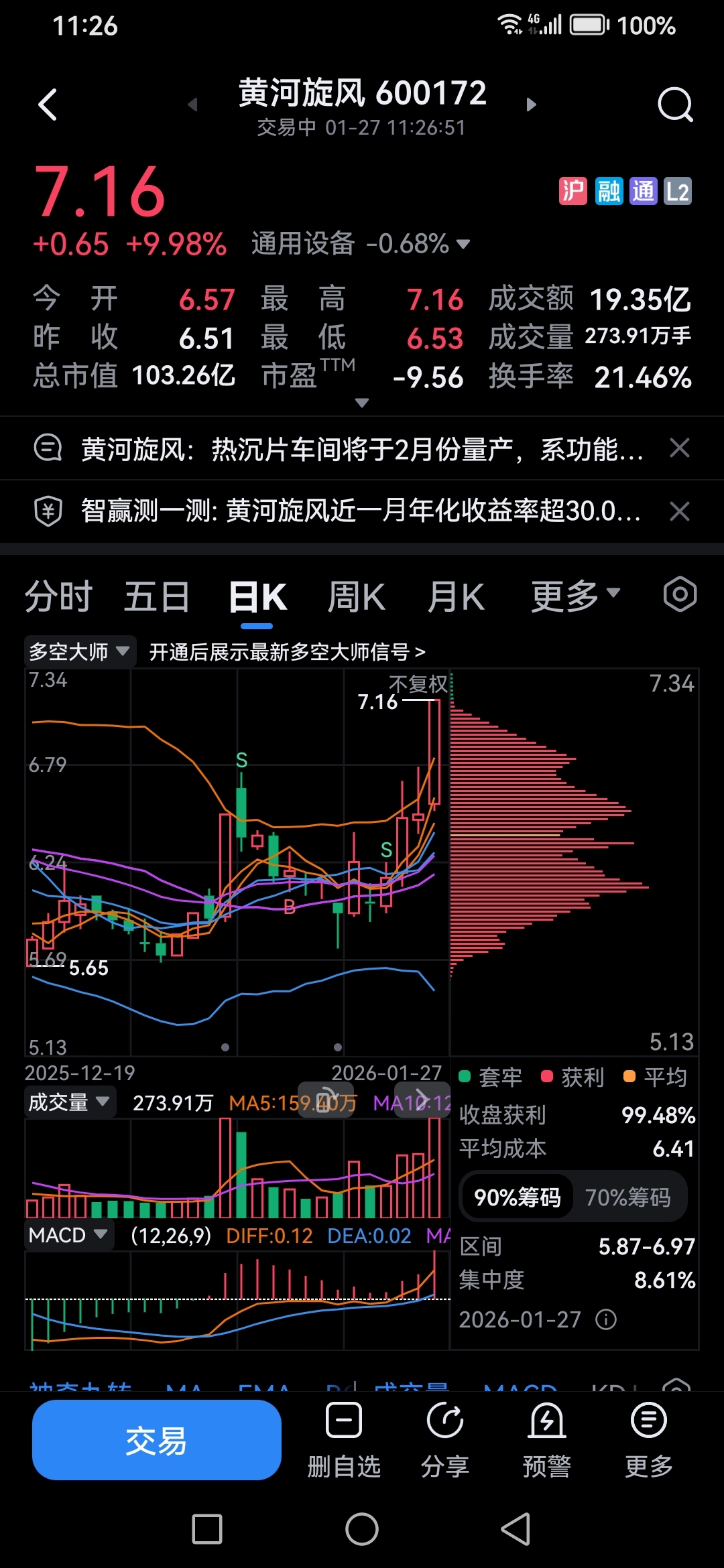 发现此消息后忍痛割爱卖出热点龙头300139晓程科技,买入600172黄河旋风
