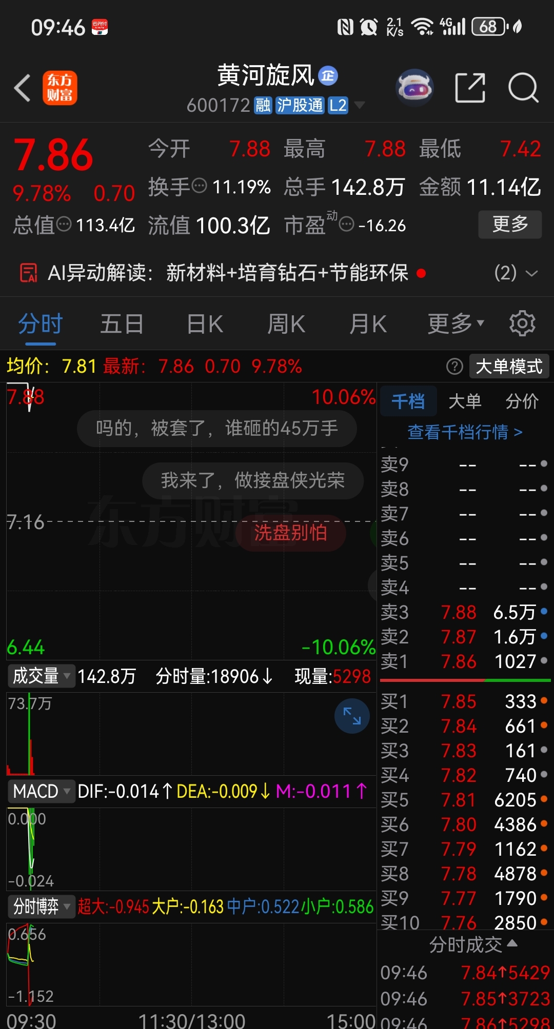 $黄河旋风(SH600172)$ 那么大利好都能开板?洗盘还是出货?