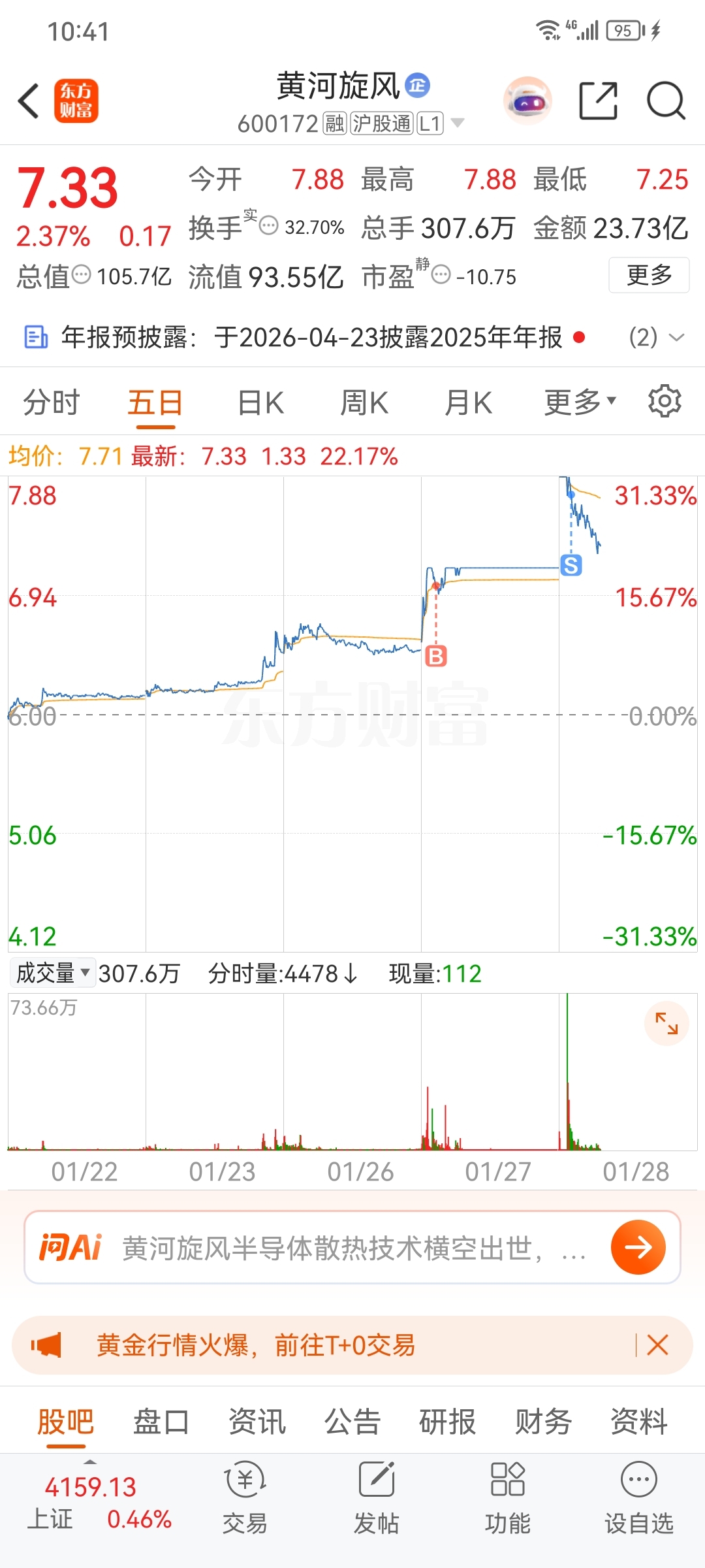 $黄河旋风(SH600172)$ 七个点走了,但是看好你。
