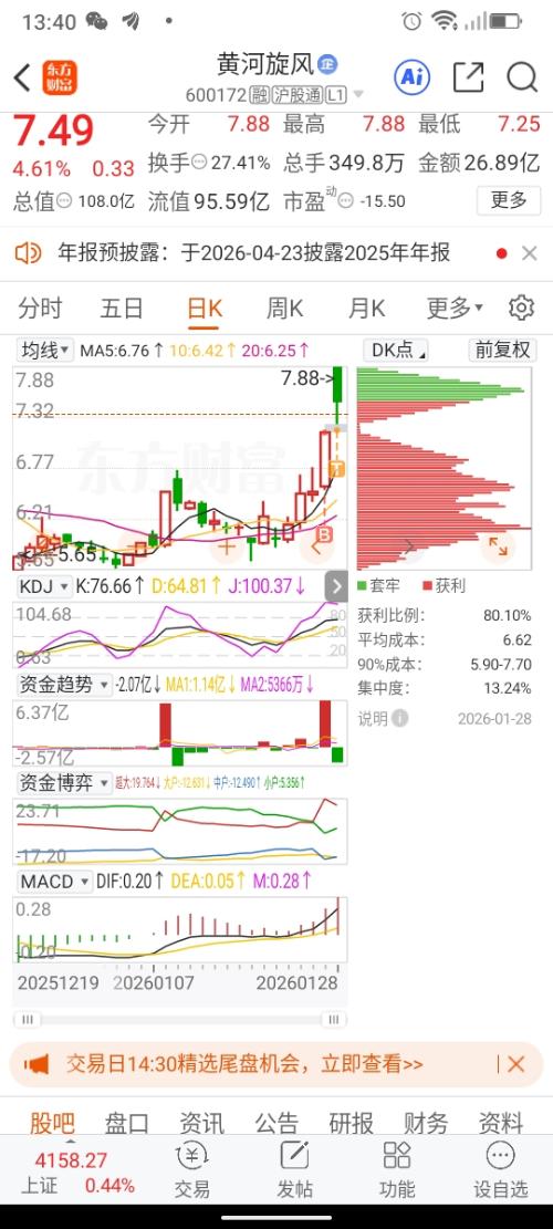 $黄河旋风(SH600172)$  低位连续两天巨量换手,换庄概率极大,高看一眼,7.35买半仓试试水。剩下半仓回封打板进。