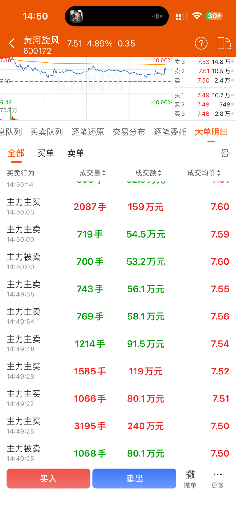 $黄河旋风(SH600172)$ 刚上去,就被打下来,今天的主力没啥实力