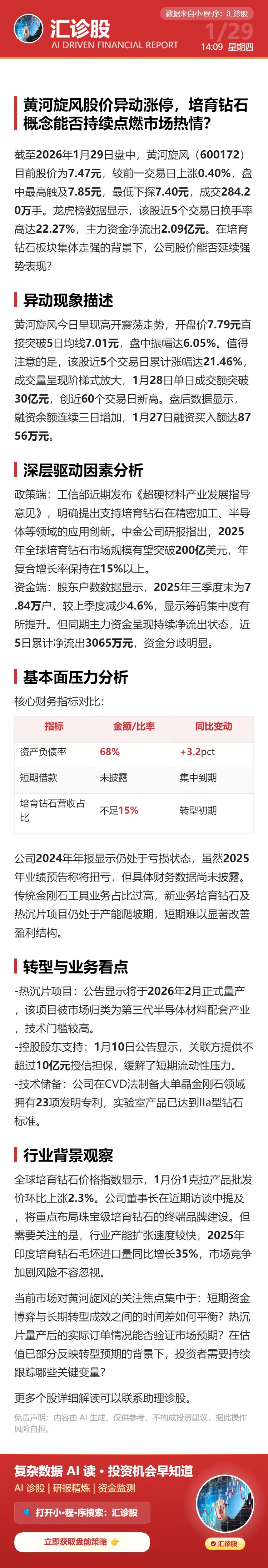 黄河旋风股价异动涨停,培育钻石概念能否持续点燃市场热情?