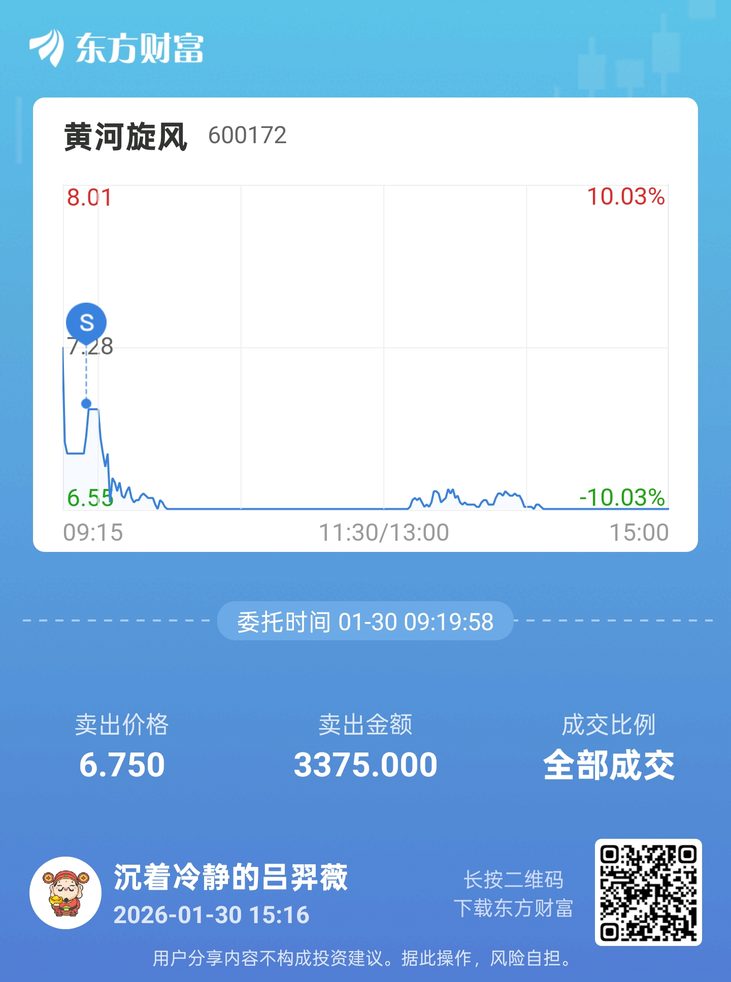 温馨提示: 1.根据《证券法》规定,禁止编造、传播虚假信息或者误导性信息,扰乱证券市场;2.用户在本社区发表的所有资料、言论等仅代表个人观点,与本网站立场无关,不对您构成任何投资建议。用户应基于自己的独立判断,自行决定证券投资并承担相应风险。《东方财富社区管理规定》