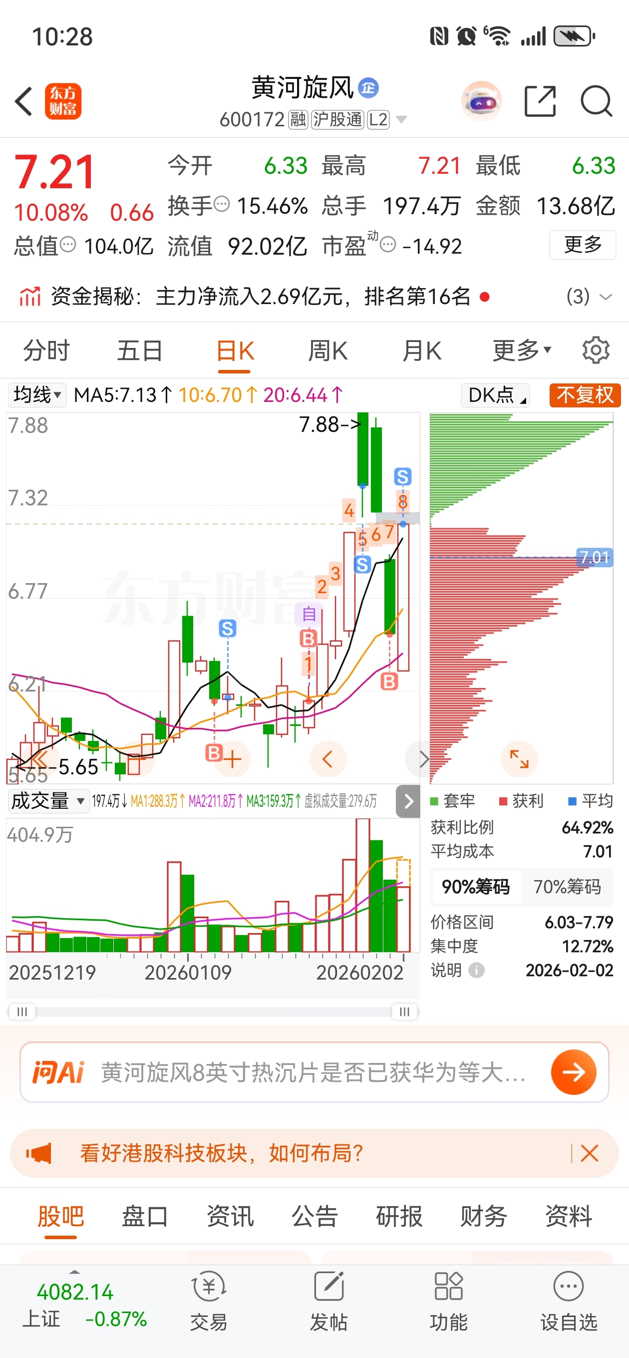 $黄河旋风(SH600172)$ 感谢主力。有机会再来!!!