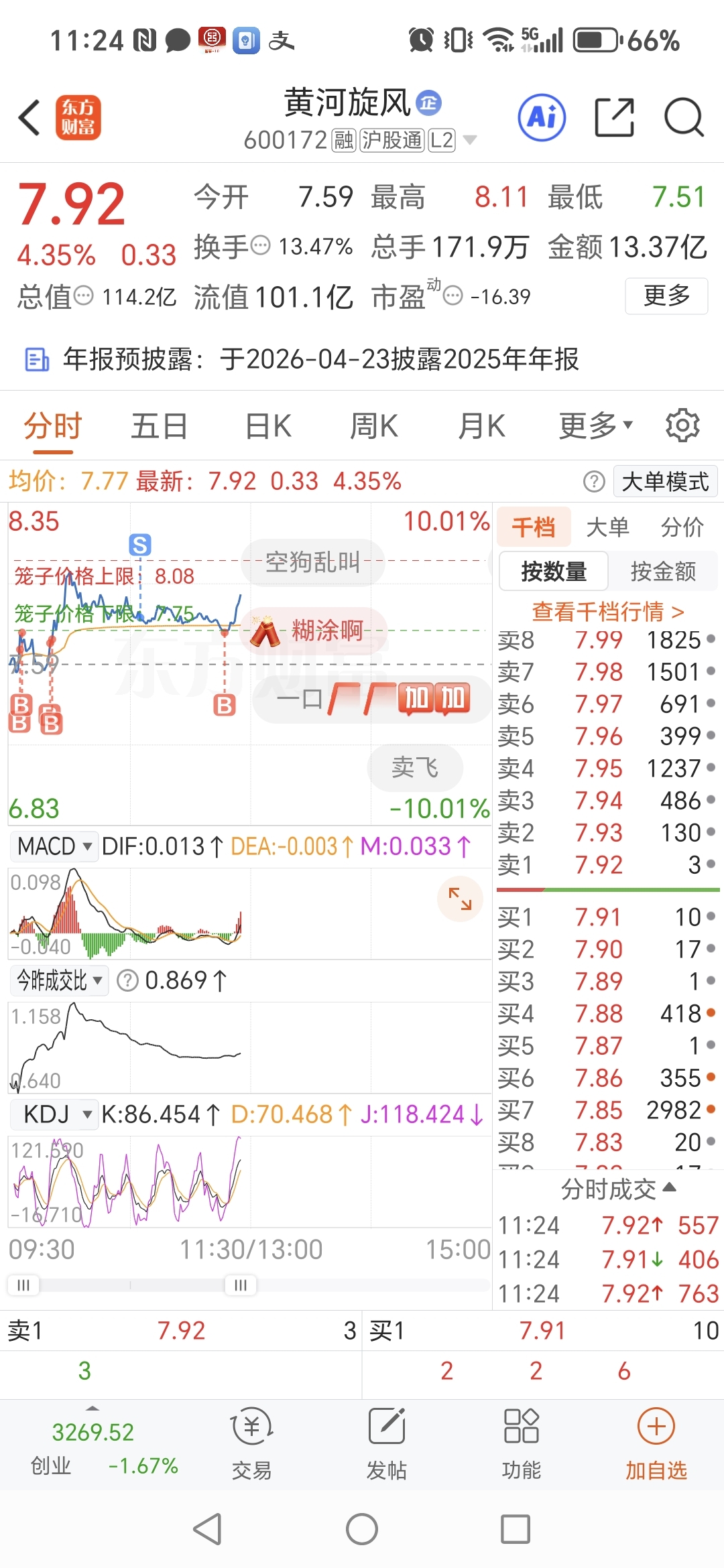$黄河旋风(SH600172)$ 有钱赚就行管那么多干啥?