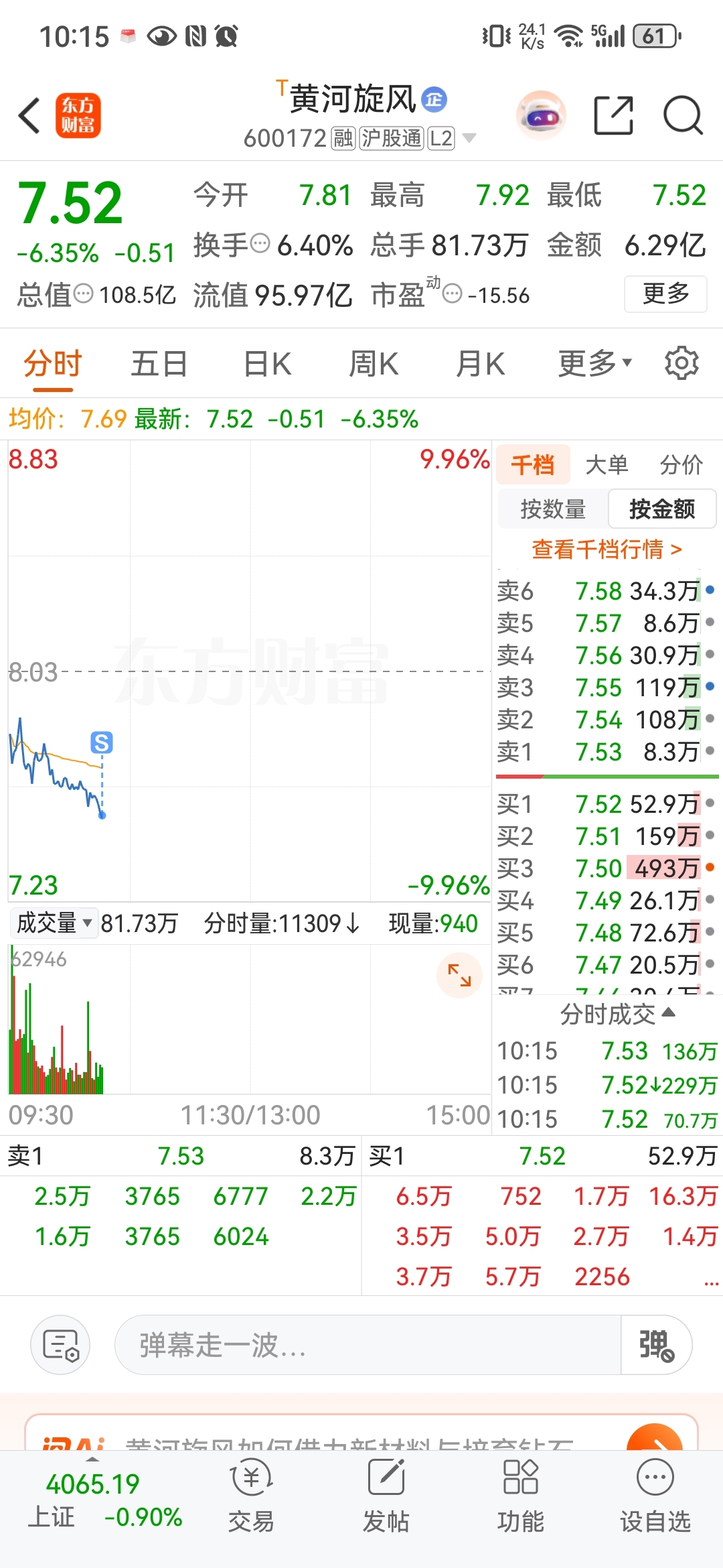 $黄河旋风(SH600172)$ 昨天不走是错误