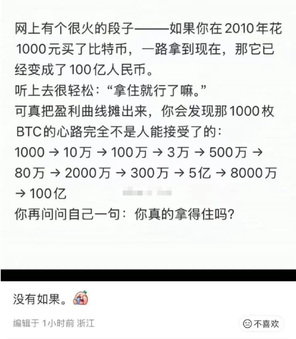 曾经的比特币也是只能换块披萨,就跟现在拿不住黄河的你们一样,把时间线拉长,这些守