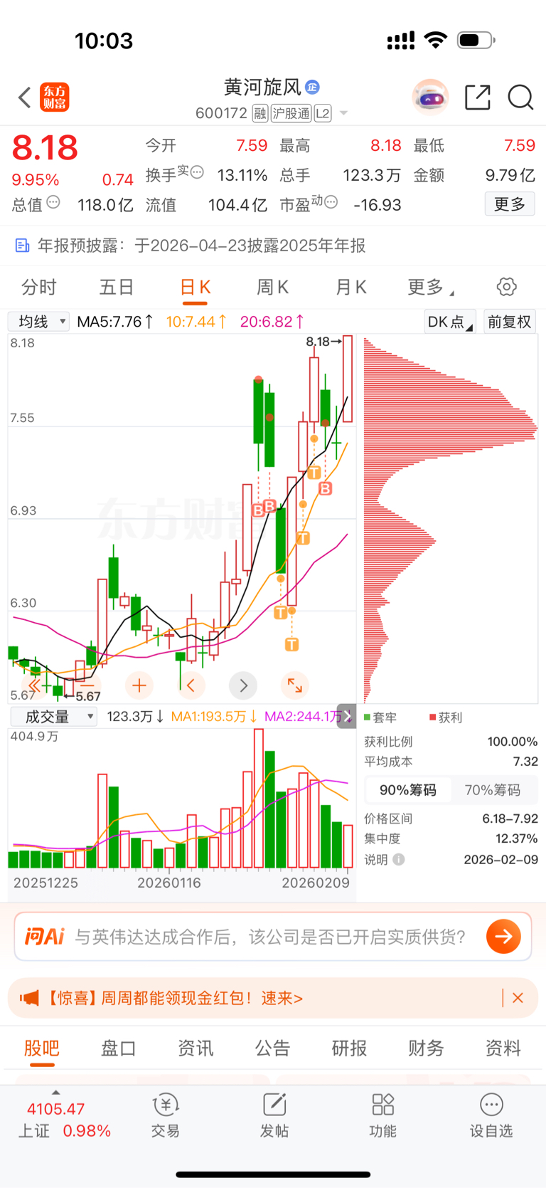 $黄河旋风(SH600172)$ 感谢黄河的庄让我浮亏10个点到赚10几个点