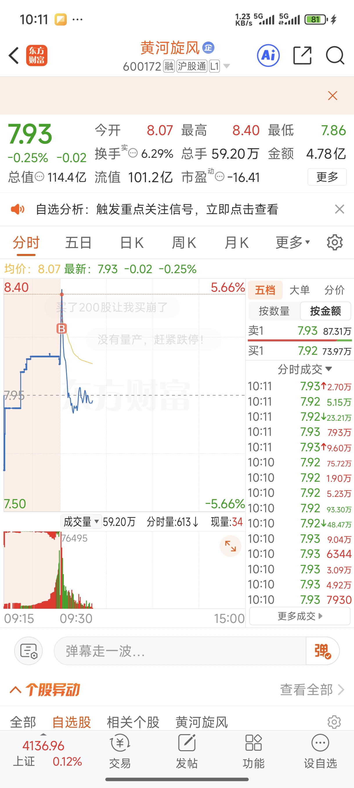 $黄河旋风(SH600172)$ 最漂亮的买点,感谢主力的关注