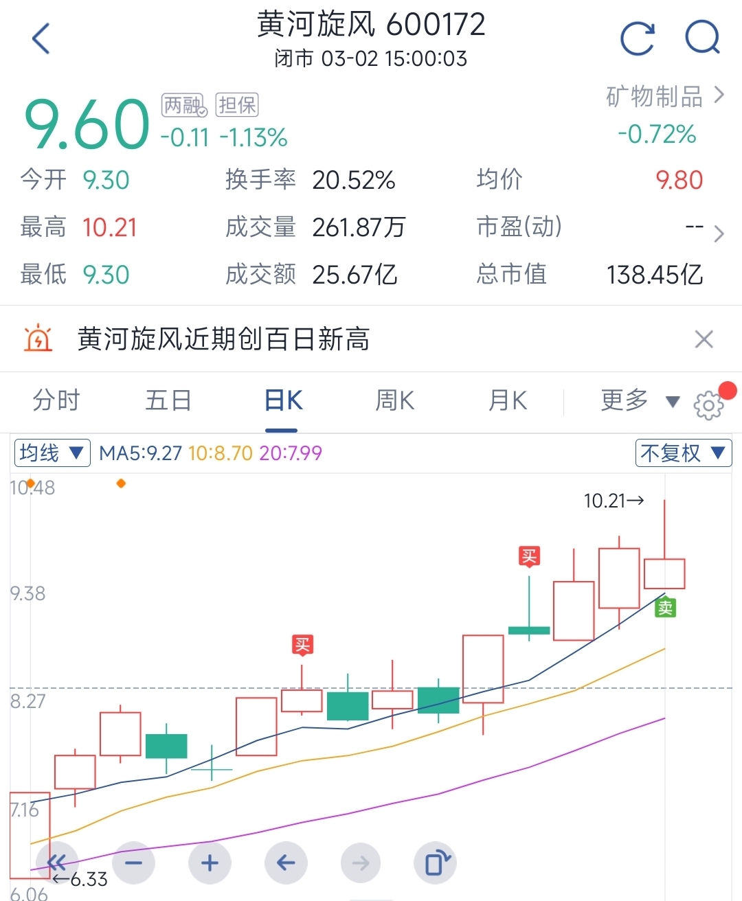 $黄河旋风(SH600172)$ 先出了 等待东风