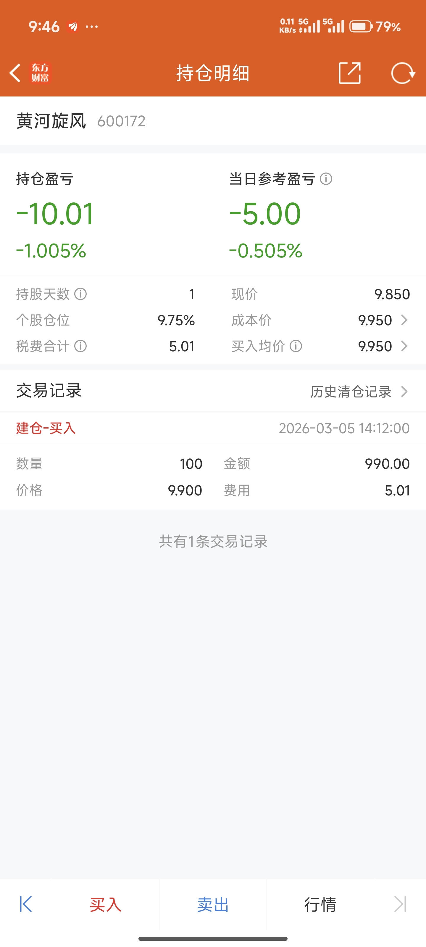 旋风(SH600172)$ 都知道我买了一百股啊