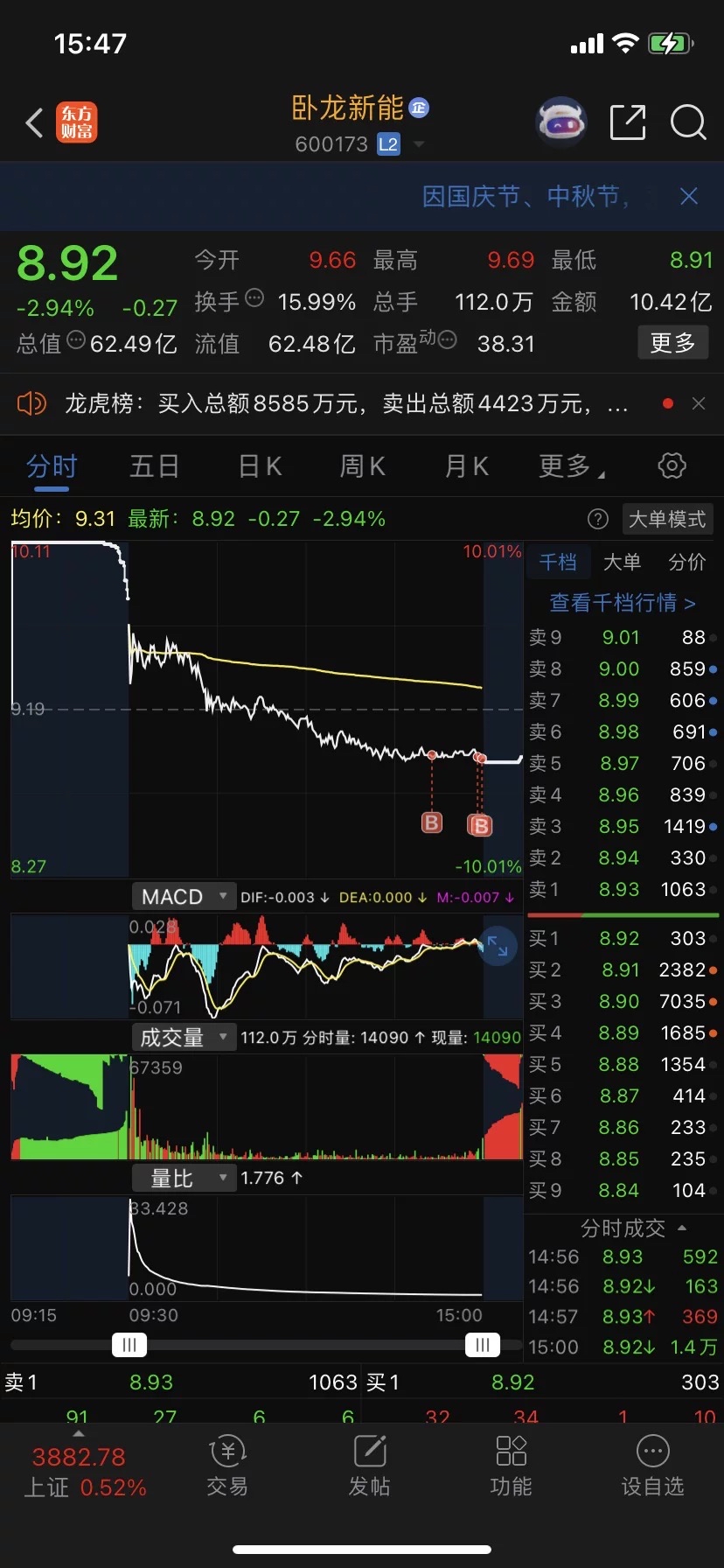 尾盘买了点试试,今天买了2只新仓,【深华发、卧龙新能】,下次如果继续下跌就补仓做