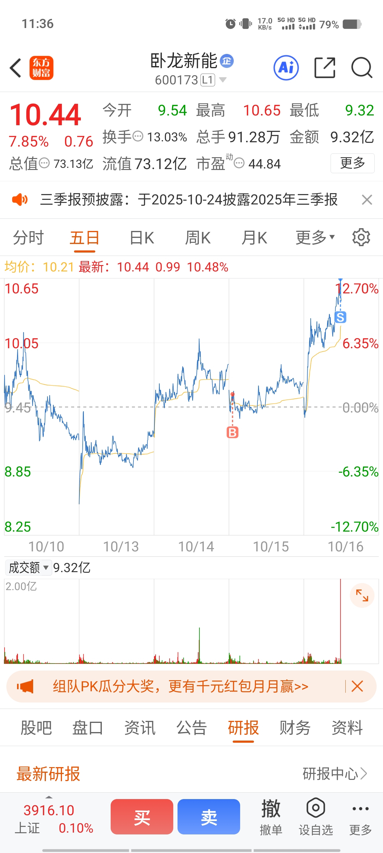 $卧龙新能(SH600173)$ 先出一半,下午在加仓