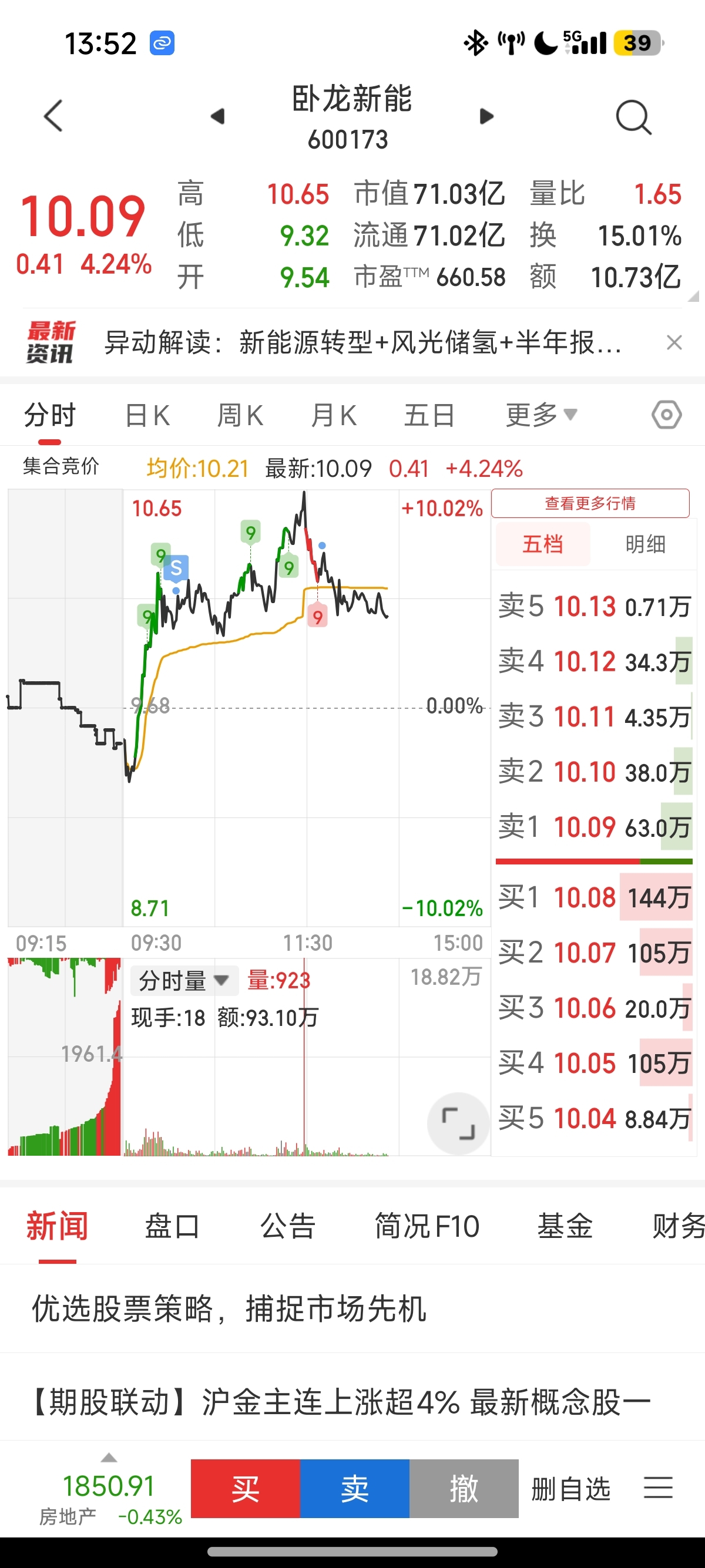 $卧龙新能(SH600173)$ 我下午挂10.40居然卖出去了???(早上挂的10.20)