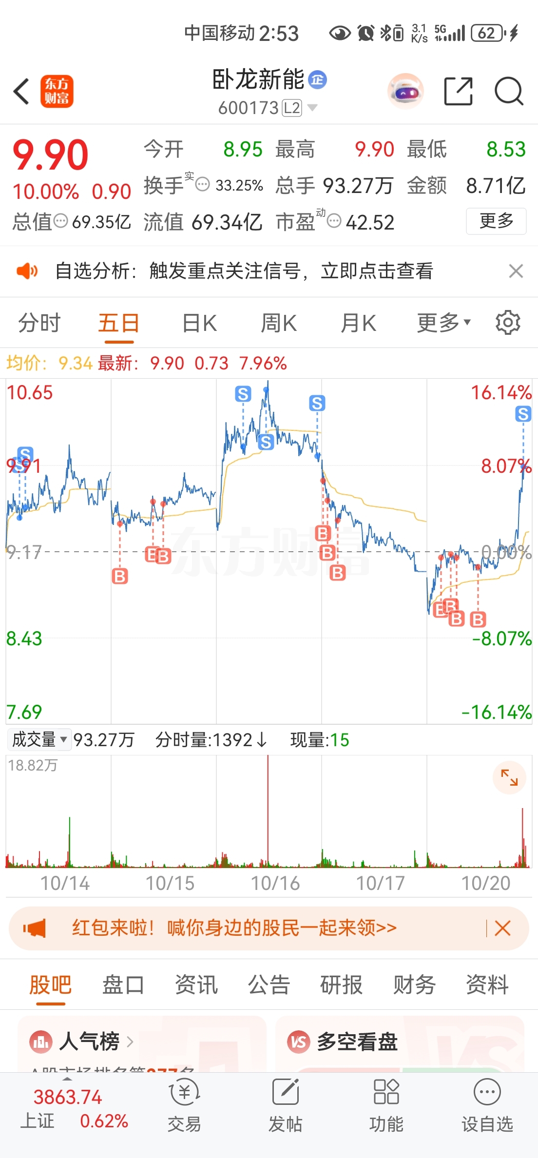 $卧龙新能(SH600173)$ 感觉今天卖飞了