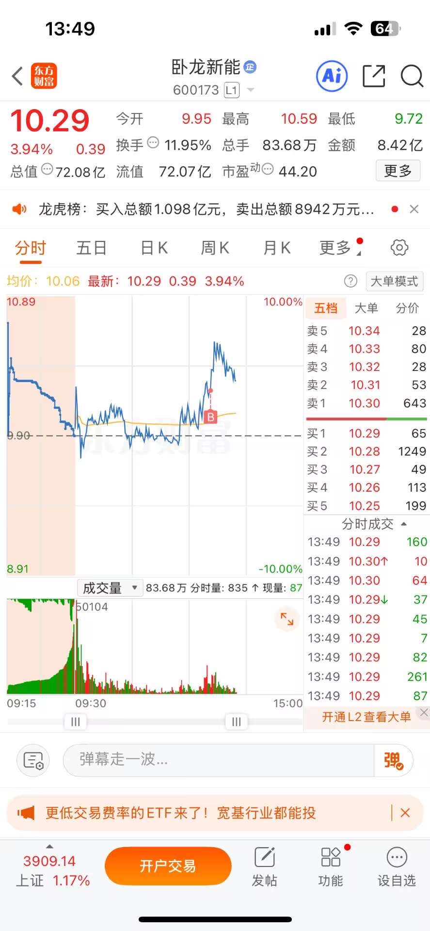 $卧龙新能(SH600173)$ 成功突破前高距离涨停只差临门一脚咯恭喜跟上的同学们,尾盘应能上板成功晋级关注明哥不迷路肉肉不断不用吃面