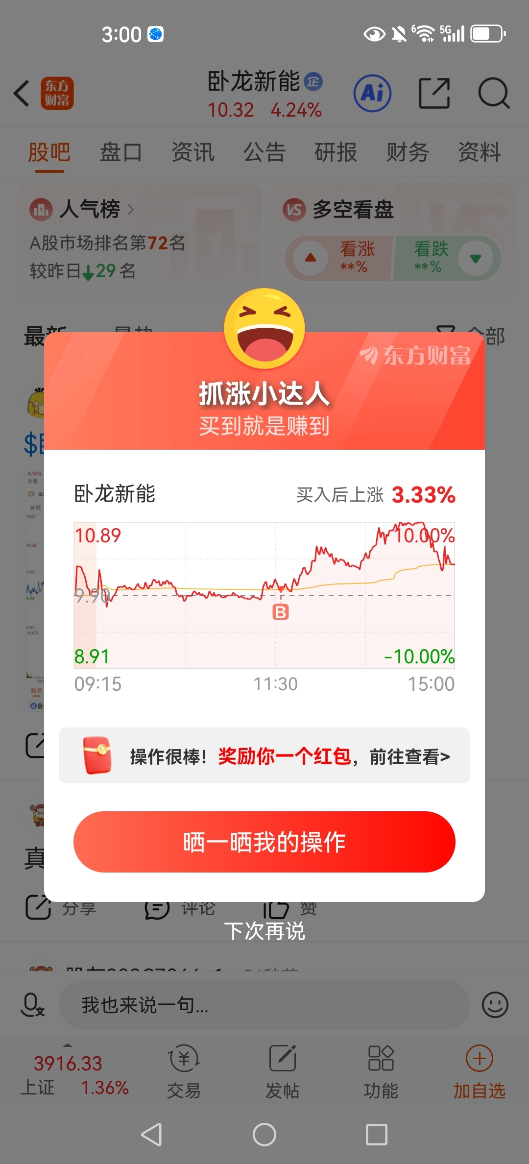 温馨提示: 1.根据《证券法》规定,禁止编造、传播虚假信息或者误导性信息,扰乱证券市场;2.用户在本社区发表的所有资料、言论等仅代表个人观点,与本网站立场无关,不对您构成任何投资建议。用户应基于自己的独立判断,自行决定证券投资并承担相应风险。《东方财富社区管理规定》