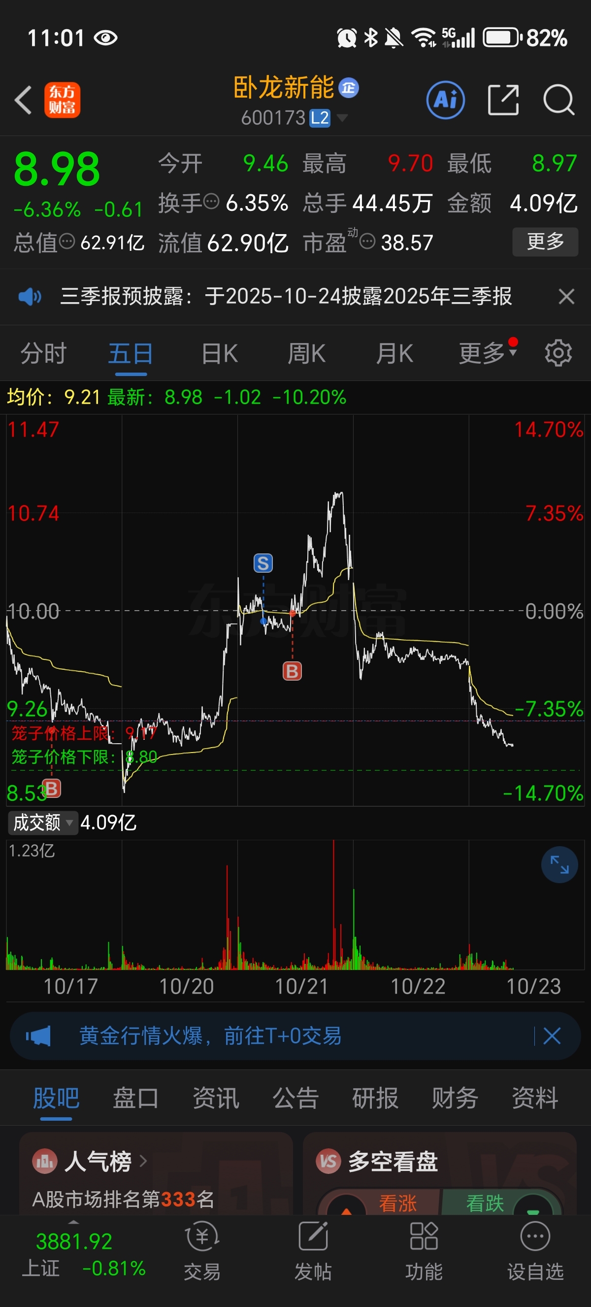 $卧龙新能(SH600173)$ 第一次失败,一开始以为卖飞了,接回来,庆幸涨停了,谁知道,这两天跌没了