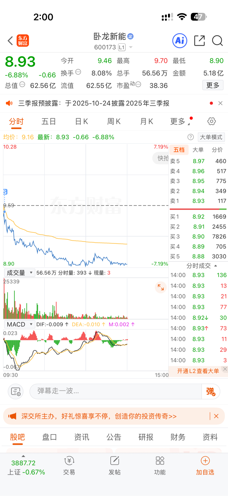 $卧龙新能(SH600173)$ 昨天低点买的今天卖的,亏点手续费。祝你们大富大贵!