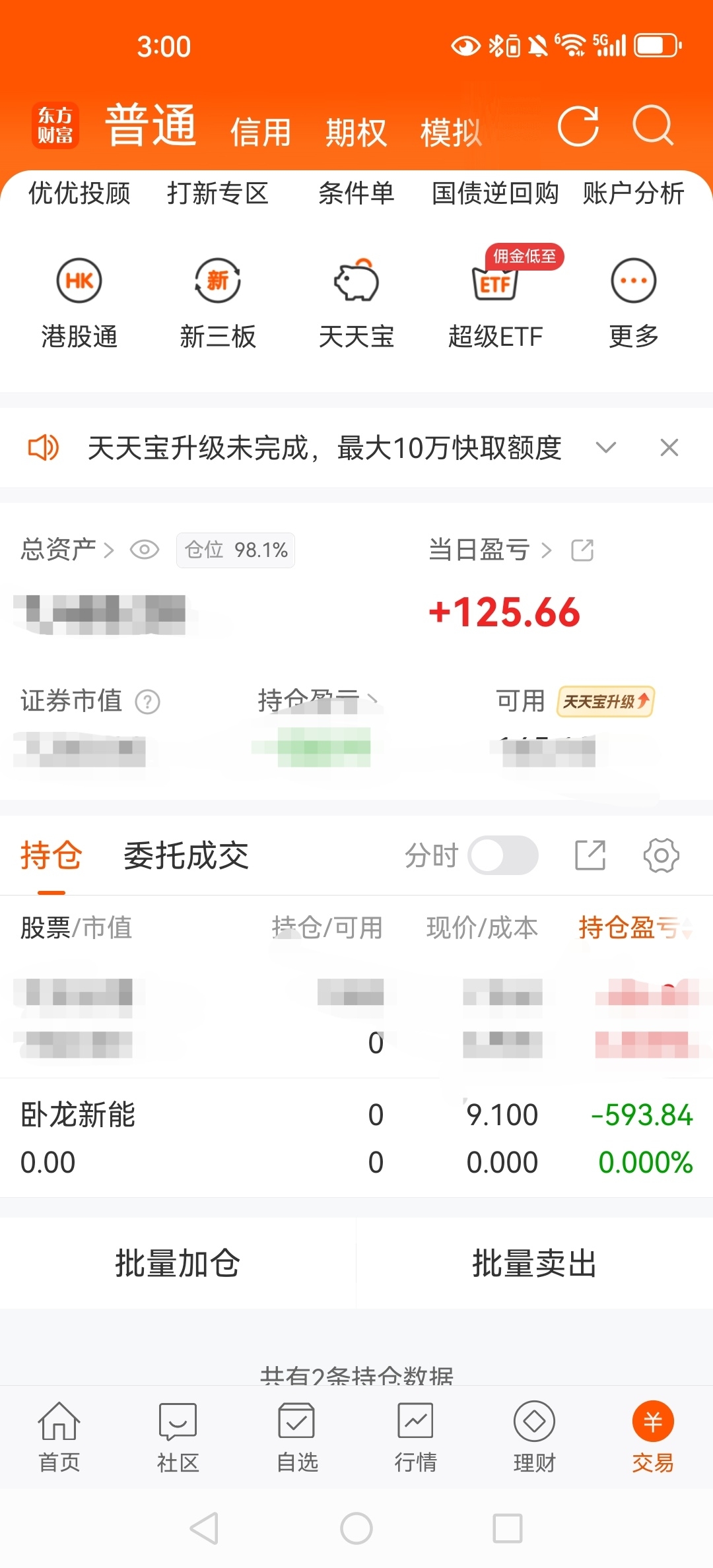 能看我账户的不要再爆点了,再随便告诉量化我的交易数据又要挨砸。大量化对付游资没有任何技巧,就是砸盘,无视技术指标,无视板块与指数,一直砸,直到把所有线都砸破,然后底部慢慢磨。