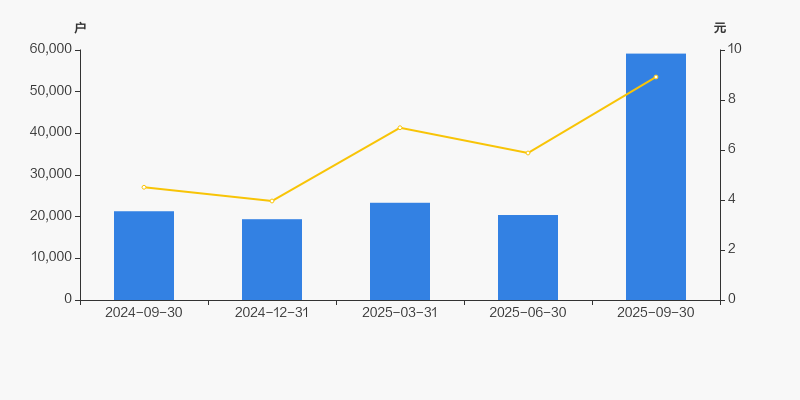 2024年9月30日至今,公司股东户数成倍增长,区间涨幅达177.63%。2024年9月30日至2025年9月30日区间股价上涨97.78%。
