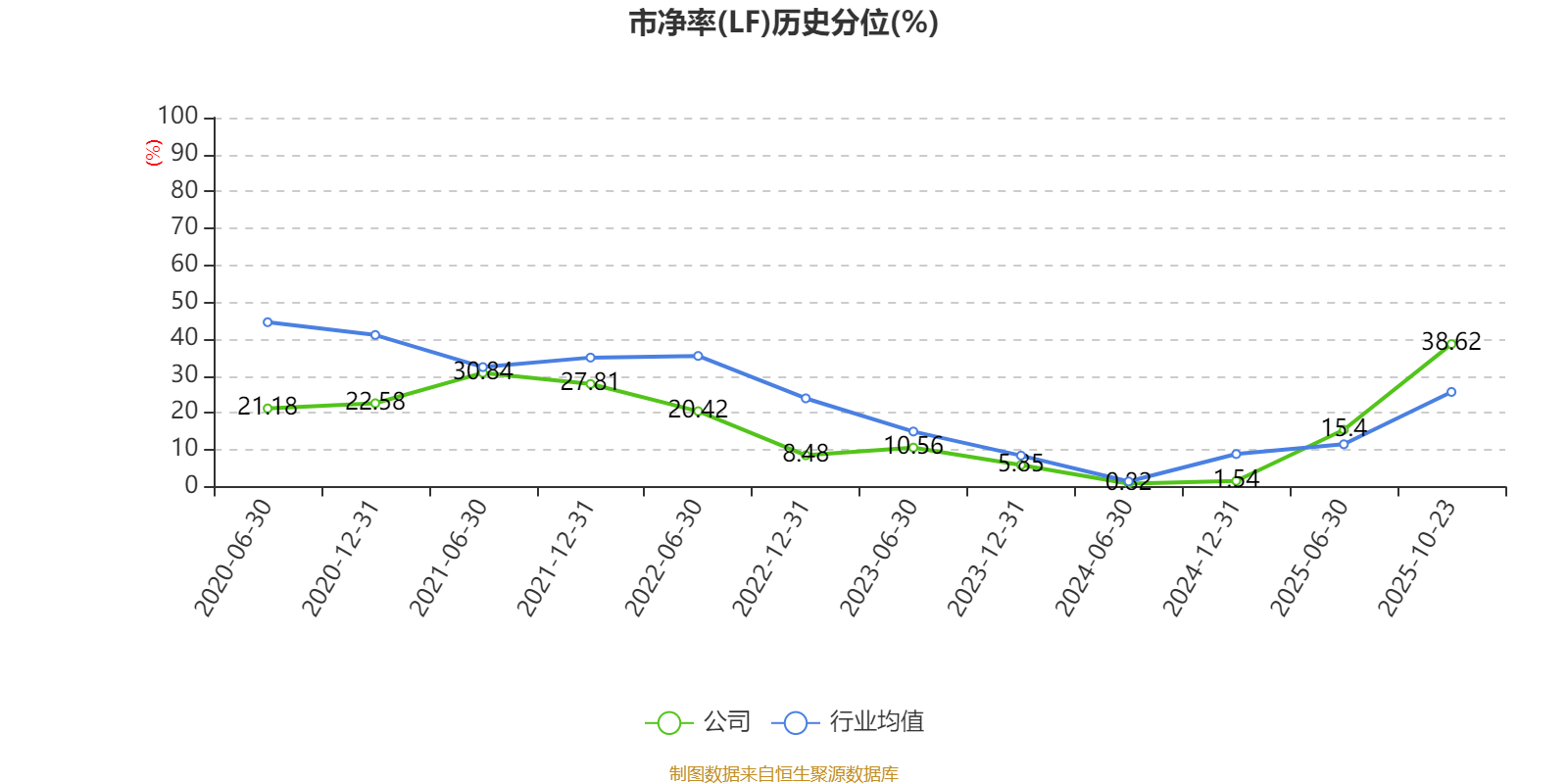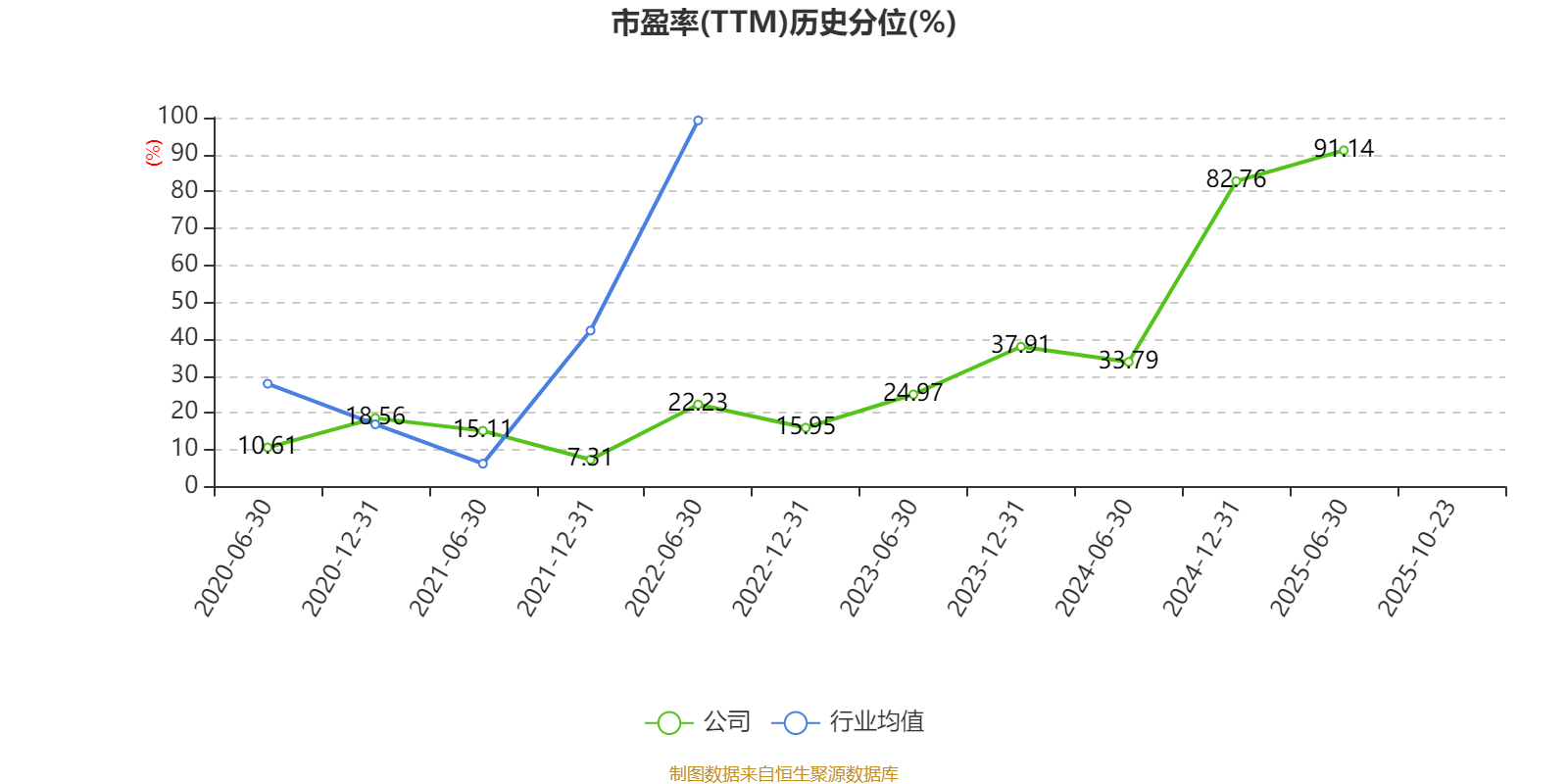 市盈率、市净率为负时,不显示当期分位数,会导致折线图中断。